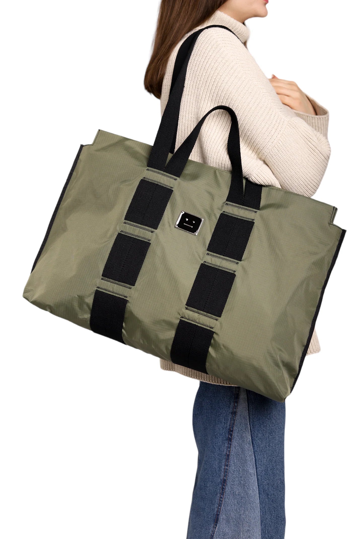 Acne Studios Arvid Plaque Face Tote Bag Khaki Green