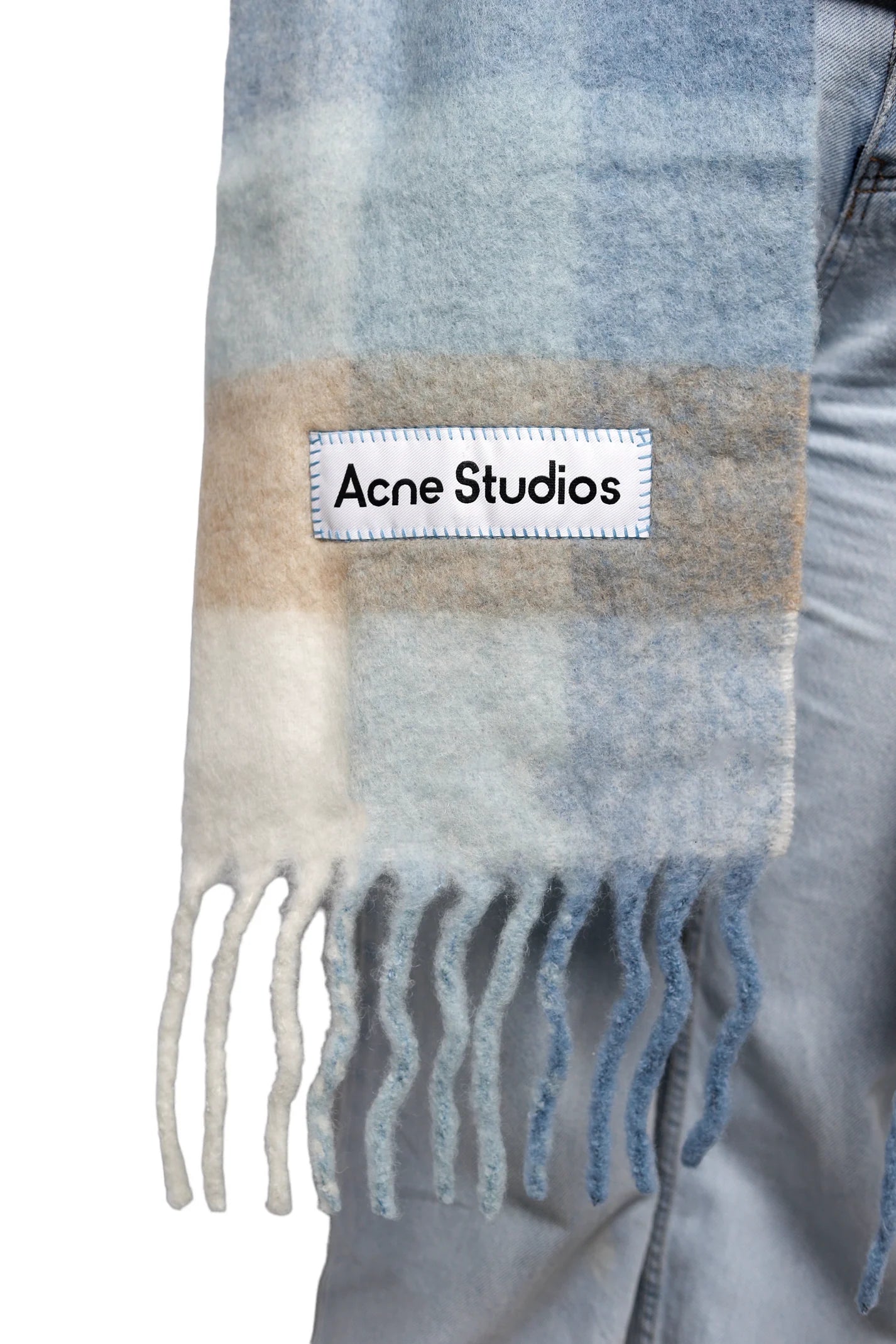 Acne Studios Checked Wool Fringe Scarf Pastel Blue/Beige