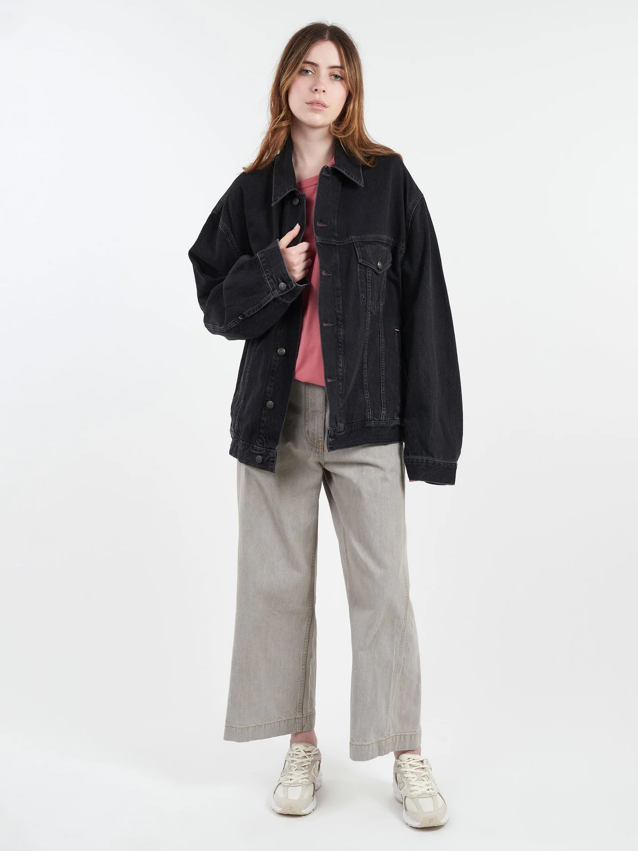 Ця джинсова куртка від Acne Studios скроєна в стилі оверсайз, зі спущеними плечима та подовженими рукавами. Виготовлена з еластичного деніму чорного кольору, що забезпечує комфорт і стиль. Куртка оснащена нагрудними кишенями і є ідеальним вибором для тих, хто цінує модний, зручний одяг.