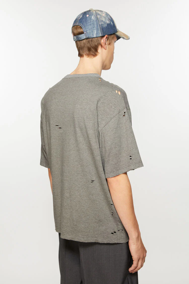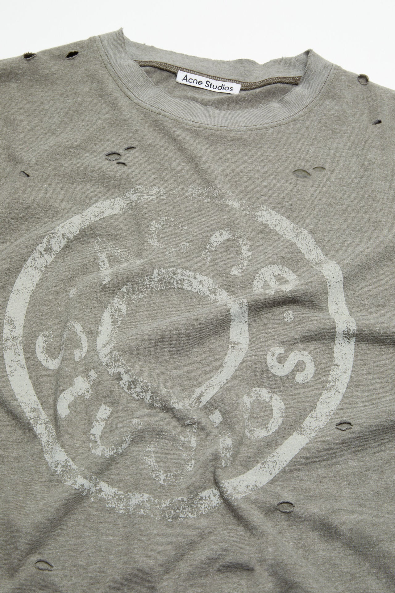 Acne Studios Distressed Logo Print T-Shirt Grey