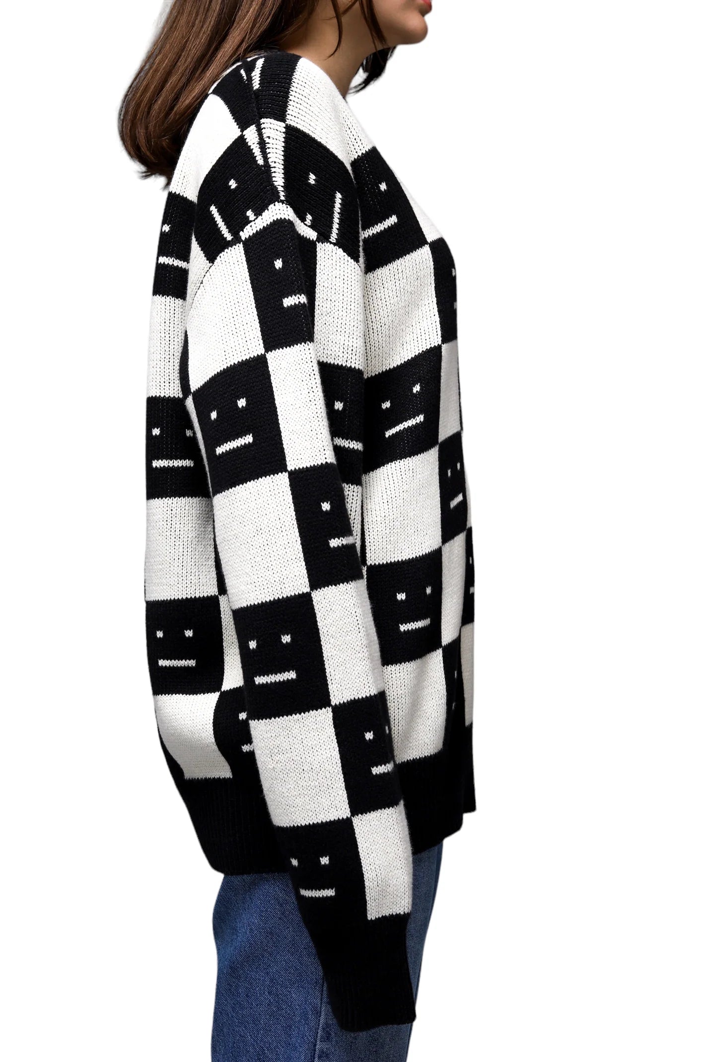 Acne Studios Face Maglia jacquard wool sweater Black/White