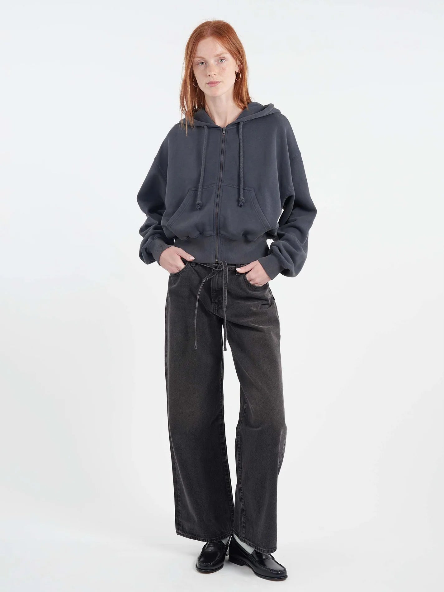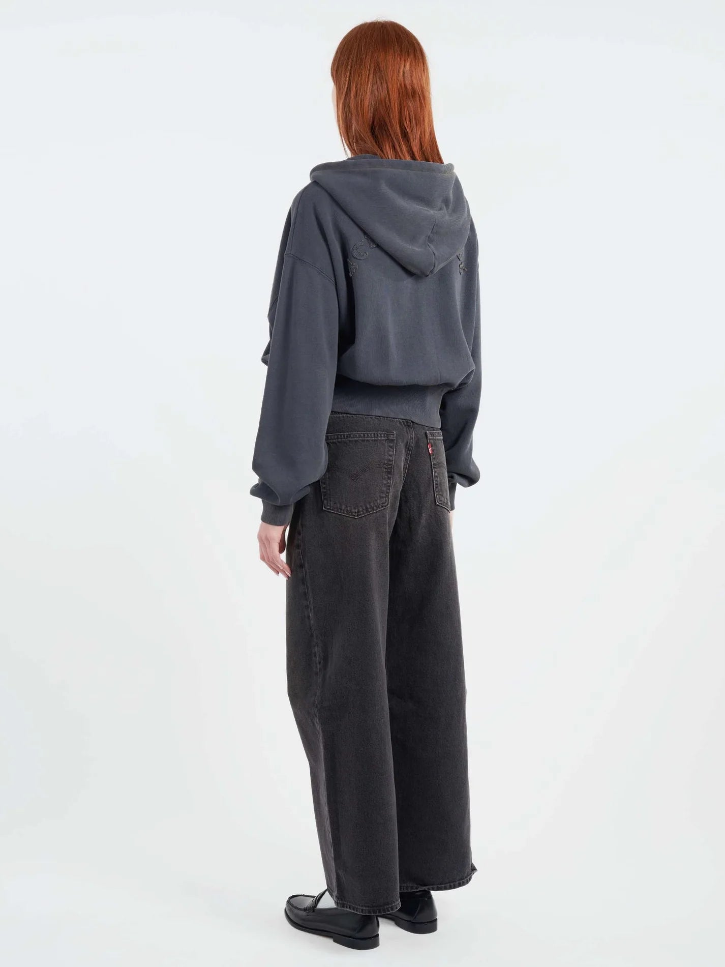 Acne Studios, відомий своїм експериментальним підходом до скандинавського мінімалізму, поєднує технічний дизайн із несподіваною кольоровою палітрою та андрогінною естетикою. Худі Felly Gothic Logo, виготовлене з щільного бавовняного трикотажу, має укорочений крій і об'ємний силует. Модель оснащена капюшоном із регульованим шнурком, застібкою-блискавкою та кишенями-кенгуру, а потертий логотип на спині додає оригінальності.