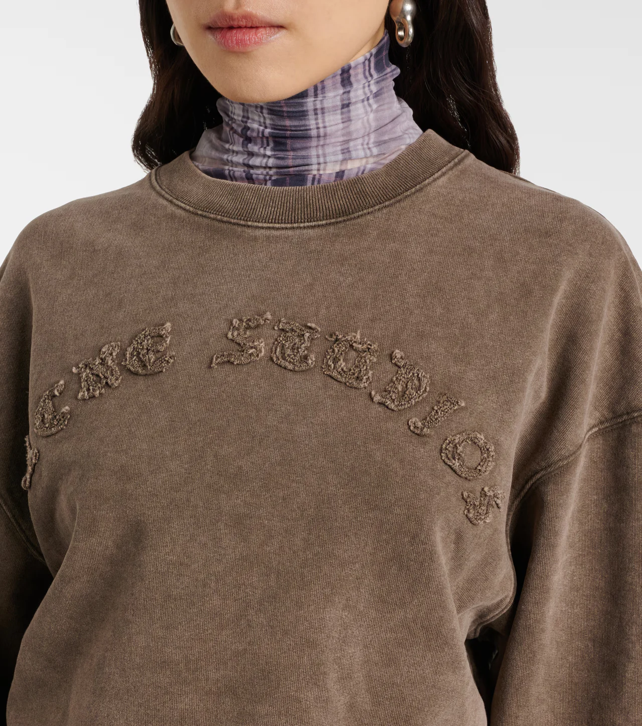 Acne Studios Logo Cropped Cotton Jersey Sweatshirt Brown