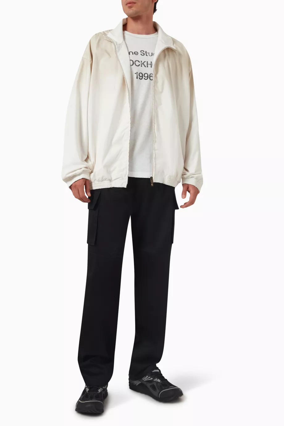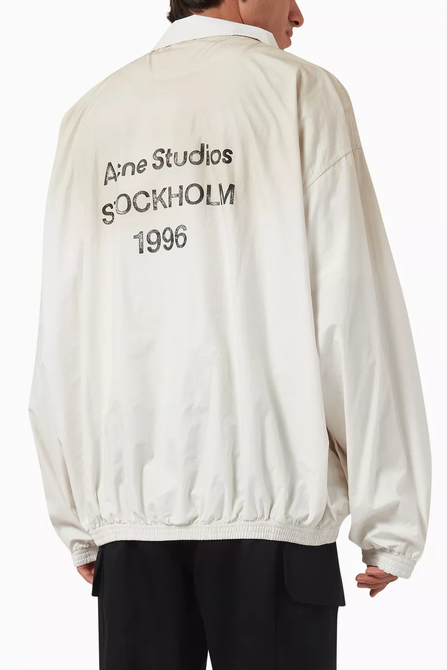 Ця стильна куртка з розслабленим кроєм має зручну застібку-блискавку по центру і кишені в бокових швах для додаткової практичності. Куртка повністю на підкладці для додаткового комфорту, а еластичні манжети та поділ забезпечують комфортну посадку. Контрастний логотип Acne Studios 1996 на спині додає виразності.