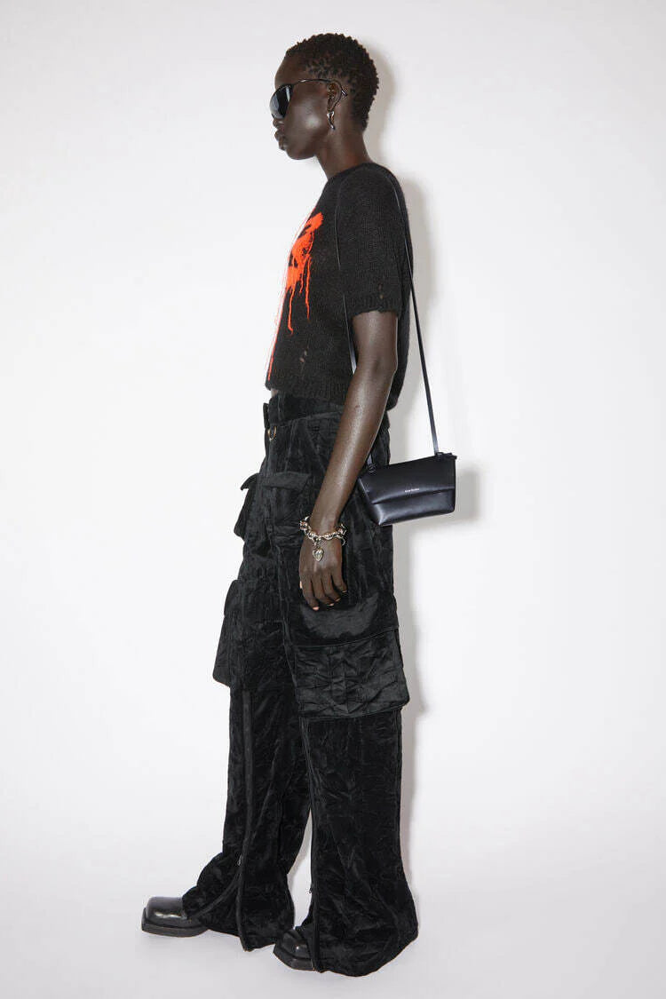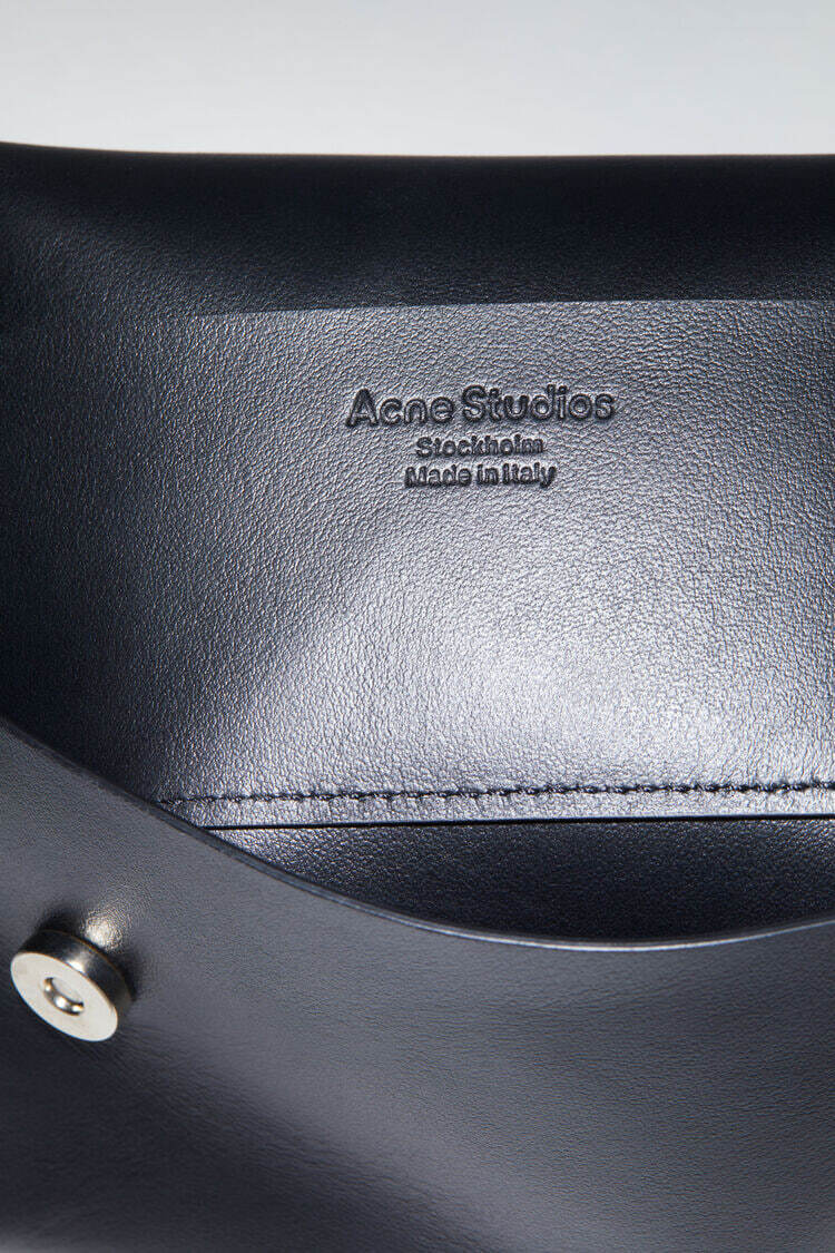 Чорна міні-сумка через плече від Acne Studios справді виділяється своїм витонченим дизайном та практичністю. Об'ємний силует надає їй сучасний і стильний вигляд, а виготовлення з м'якої шкіри гарантує не лише якість, але й довговічність.