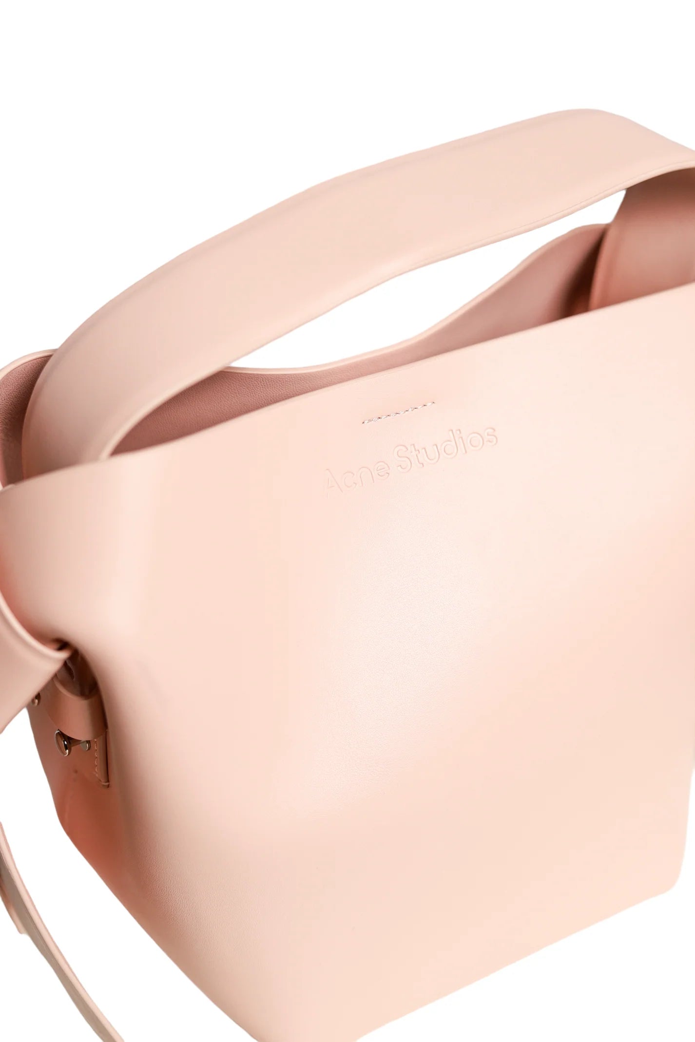 Міні-сумка Musubi від Acne Studios дійсно вражає своїм елегантним дизайном та стилем. Декор у вигляді вузла додає цій сумці неповторний шарм та вишуканість, підкреслюючи її унікальний характер. Виштампований логотип додає ексклюзивності, а верхня ручка та плечовий ремінець роблять її дуже практичною для різних ситуацій. Виготовлена з 100% натуральної шкіри, ця сумка відзначається розкішним виглядом та класичністю.