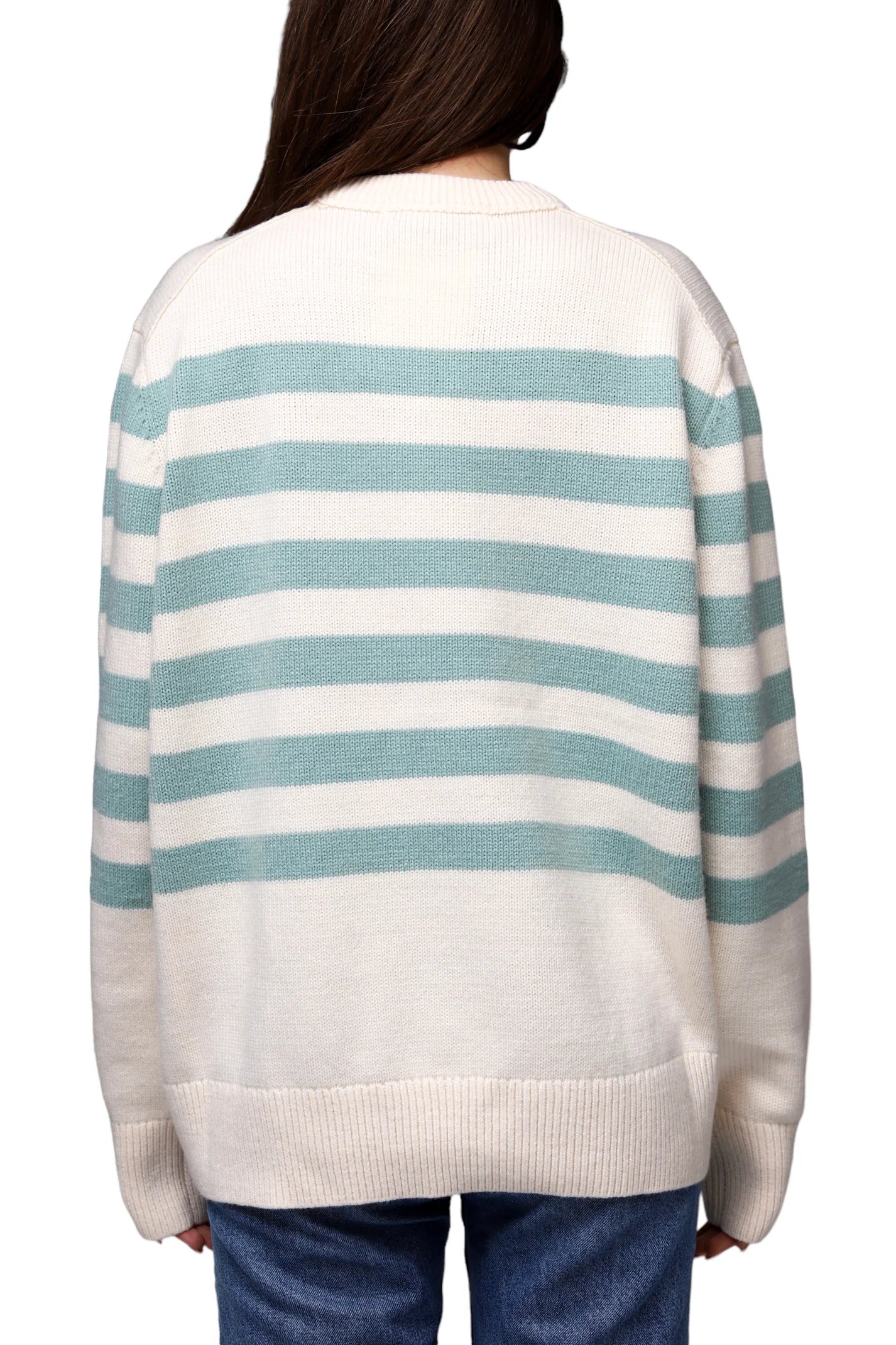 Цей бежево-зелений трикотажний джемпер від Acne Studios явно відображає скандинавський стиль. Виготовлений з чистої вовни, він обіцяє не лише комфорт, а й тепло в холодну погоду. Фірмова нашивка на грудях додає елемент ексклюзивності та вишуканості, що характерно для бренду. Ребриста обробка забезпечує структуру та стиль, додаючи джемперу завершеності. Це чудовий вибір для тих, хто цінує комфорт і якість у своєму гардеробі.