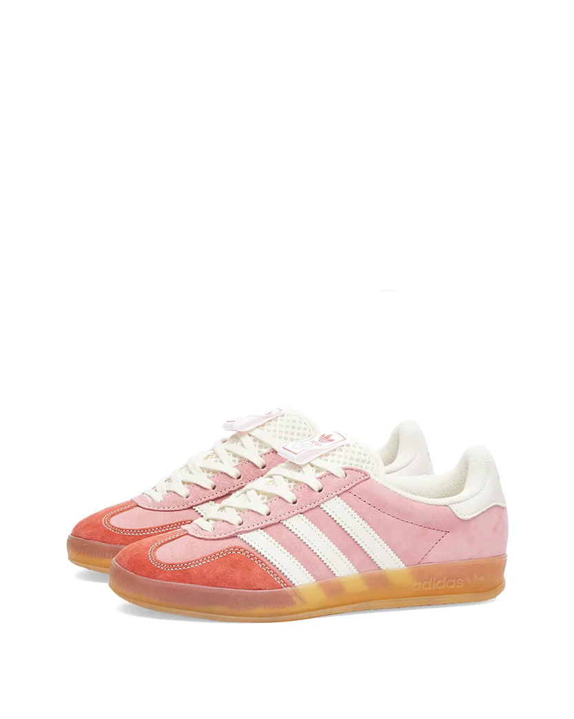 END. знову об'єднують зусилля з adidas для їхнього останнього спільного проекту «Laundromat», в якому представлені три силуети бренду 3-Stripes. Концепція - це грайливий натяк на те, що коли ви випадково змішуєте білий одяг з яскравою річчю, чистий вигляд перетворюється на щось яскраве. Ця лімітована серія END. x adidas Gazelle Indoor «Laundromat» втілює зі смаком випрану рожеву кольорову гаму з преміальними матеріалами та багатими сюжетними деталями для створення розкішного образу.