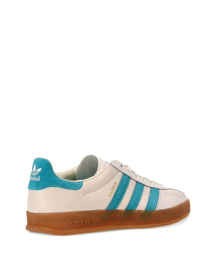 Adidas Gazelle Indoor 'Chalk Turquoise' – це повернення культової моделі в оновленому ретро-стилі. Виготовлені зі шкіри та доповнені трьма фірмовими смужками і вставку на п’яті з бірюзової преміум-замші. Підошва з натурального каучуку забезпечує чудове зчеплення з поверхнею, роблячи їх ідеальним вибором як для активного способу життя, так і для повсякденного стилю. Спочатку створені у 1970-х як тренувальне взуття, сьогодні Gazelle Indoor – це поєднання комфорту, традицій та сучасної естетики.