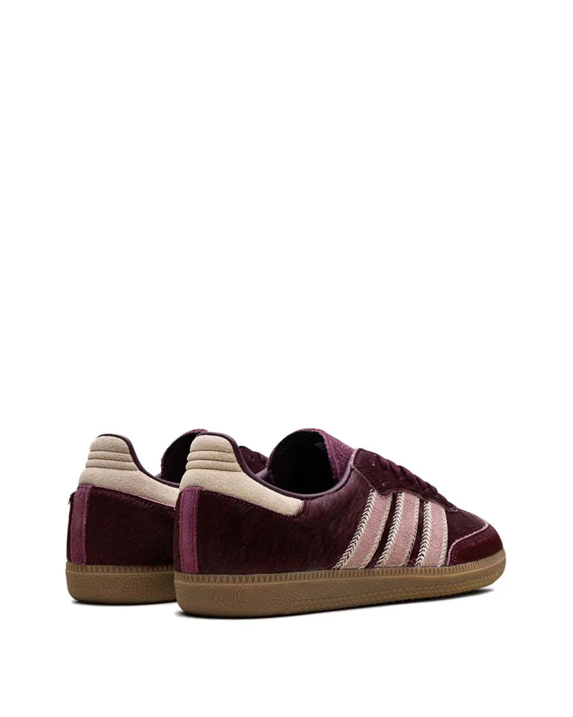 Adidas Samba OG W Sand Strata Maroon — жіноче переосмислення культової моделі, що поєднує впізнаваний ретро-силует із сучасною палітрою. Поєднання ніжного відтінку Sand Strata з насиченими маруновими акцентами надає взуттю елегантності та тепла. Верх виконаний із комбінації натуральної замші та гладкої шкіри, що забезпечує стиль і довговічність, а класична гумова підошва дарує комфорт і надійне зчеплення. Ця модель ідеально впишеться як у повсякденні, так і в більш виразні образи, зберігаючи в собі ДНК легендарної Samba.