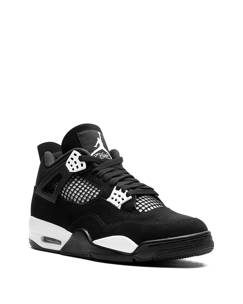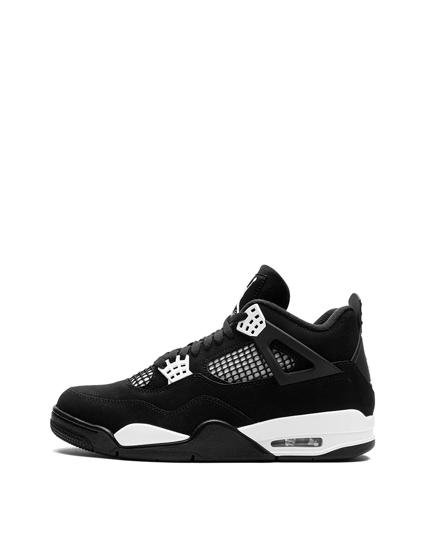 Air Jordan 4 Retro White Thunder — монохромна чорна інтерпретація культової моделі, підкреслена контрастними білими акцентами, що формують чистий і виразний силует. Кросівки зберігають впізнавані деталі AJ4: сітчасті вставки, пластикові «крила» для шнурків та масивну підошву з видимою Air-подушкою в п’яті. Верх виконаний із чорного нубуку, який надає текстурі глибини та підсилює мінімалістичну кольорову схему. Поєднання класичного дизайну й сучасного комфорту робить “White Thunder” однаково ефектними як для повсякденних образів, так і для колекціонерів Jordan.