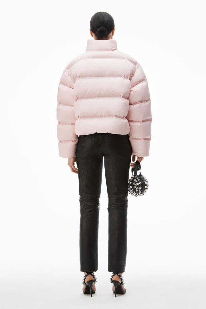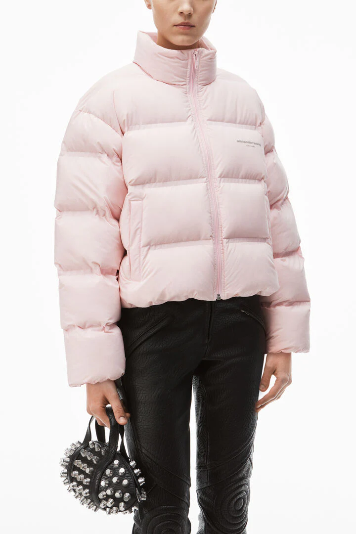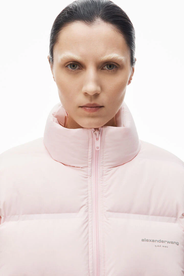 Alexander Wang Cropped Puffer Coat With Reflective Logo Pink
