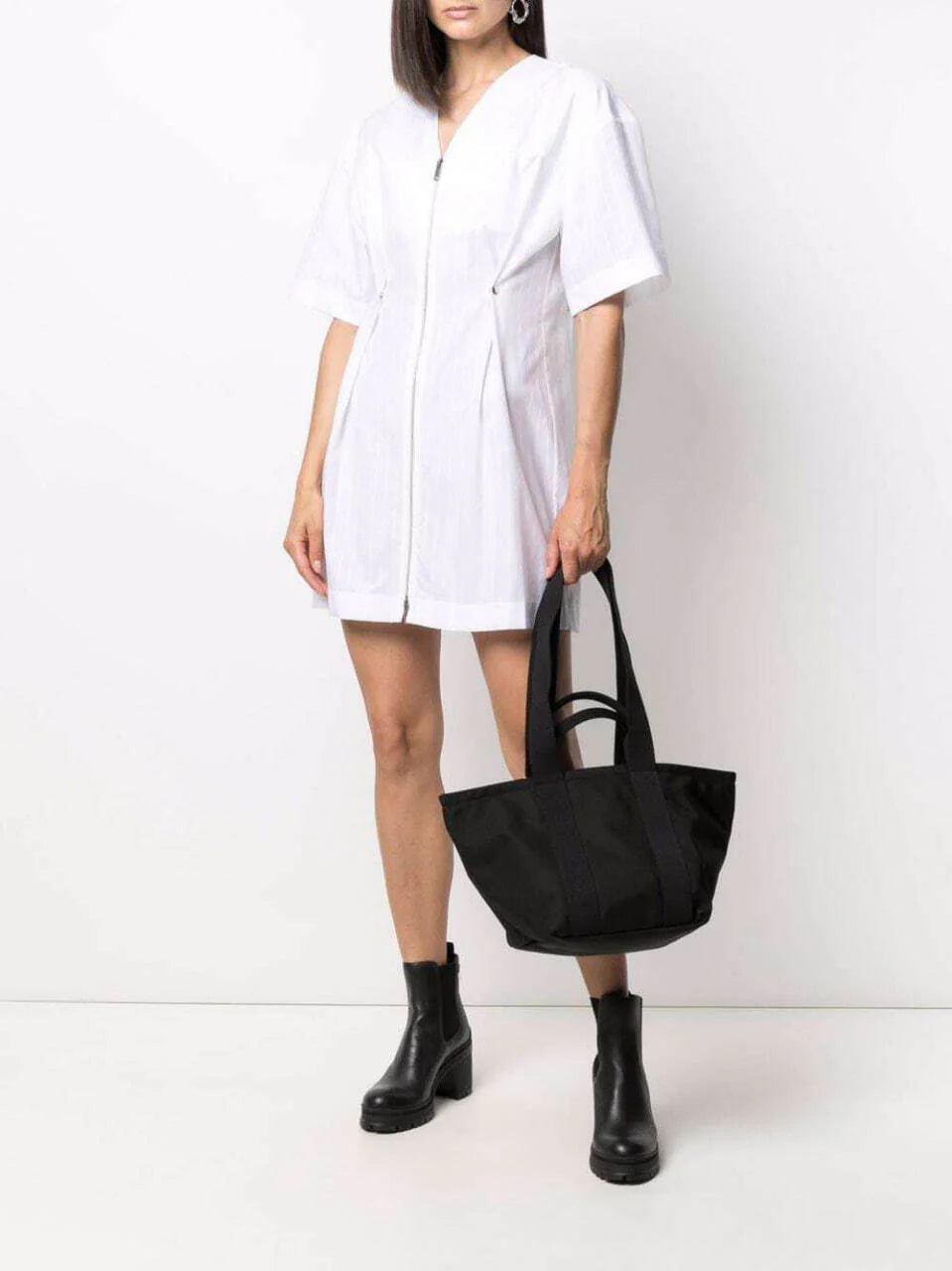 Сумка Alexander Wang Primal - це стильний аксесуар, який поєднує в собі комфорт і елегантність. Виготовлена з нейлонового полотна, вона є легкою і міцною. Вишивка логотипу спереду додає сумці оригінальний вигляд і підкреслює її брендовий статус. Сумка має дві короткі ручки для зручного тримання в руці, а також дві довгі ручки для носіння на плечі. Застібка-блискавка в тон дозволяє легко і швидко відкривати та закривати сумку, забезпечуючи безпеку вашим речам всередині. Ця чорна велика сумка стане стильним доповненням до вашого образу і прикрасить будь-який вигляд.