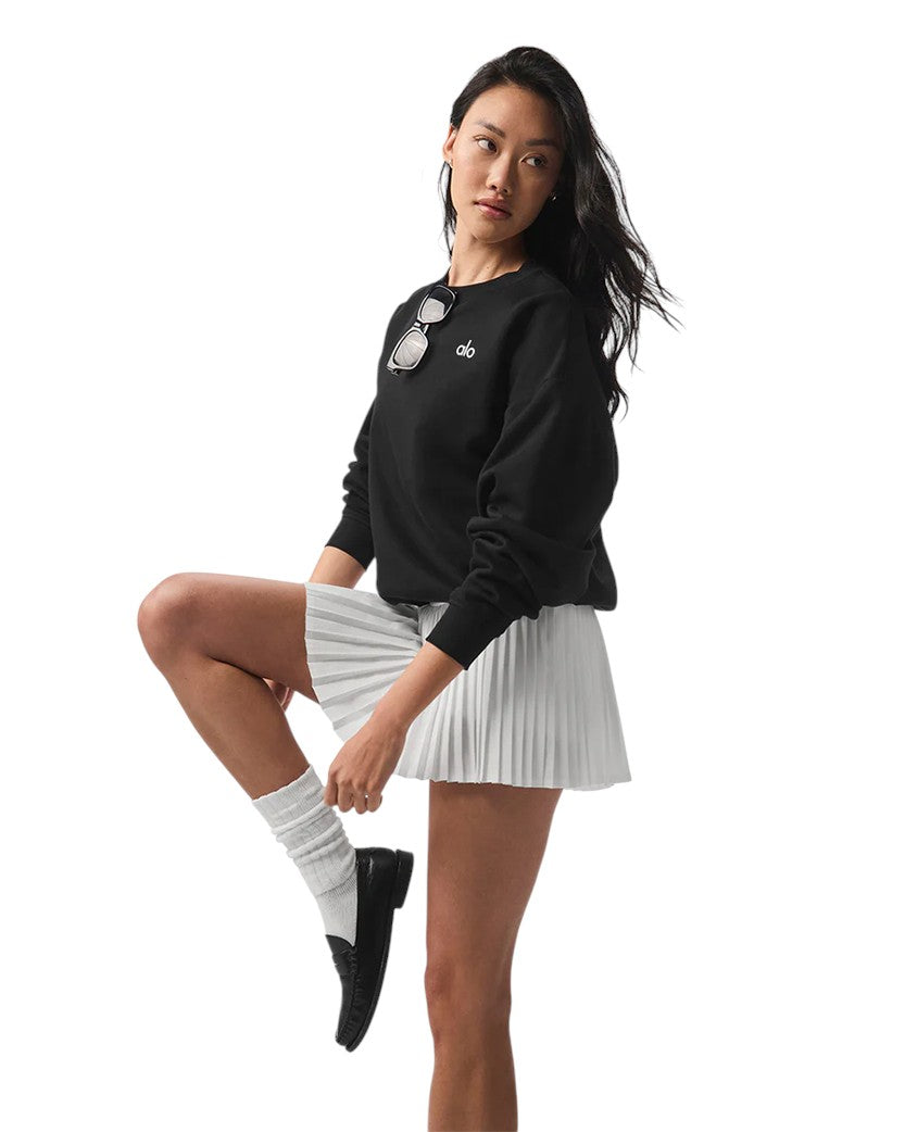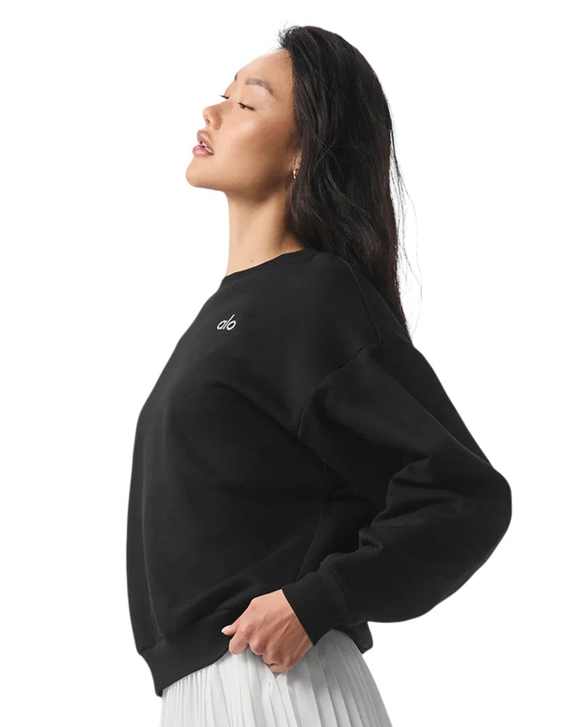 Alo Yoga Accolade Crew Neck Pullover Silver Logo Black