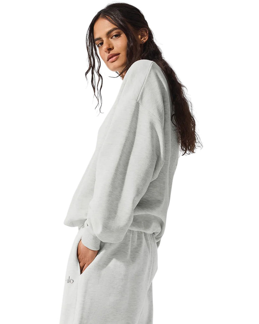 Цей бестселер від Alo Yoga — ідеальний вибір для тих, хто шукає поєднання затишку, комфорту і стилю. Світшот має класичний круглий виріз, ребристий поділ і манжети, а також розслаблений крій зі спущеними плечима для максимального комфорту. Модель виготовлена з французької махрової тканини середньої ваги, яка має гладку зовнішню сторону і ворсисту внутрішню, що додає затишку. Модель прикрашена хромованим логотипом Alo.