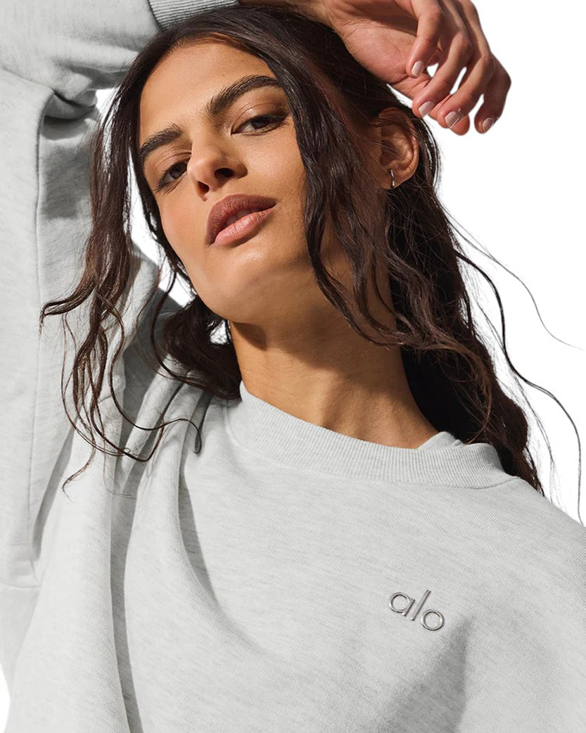 Alo Yoga Accolade Crew Neck Pullover Silver Logo Grey