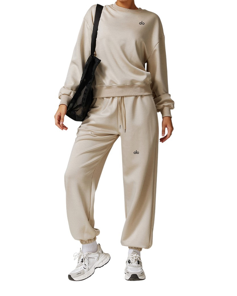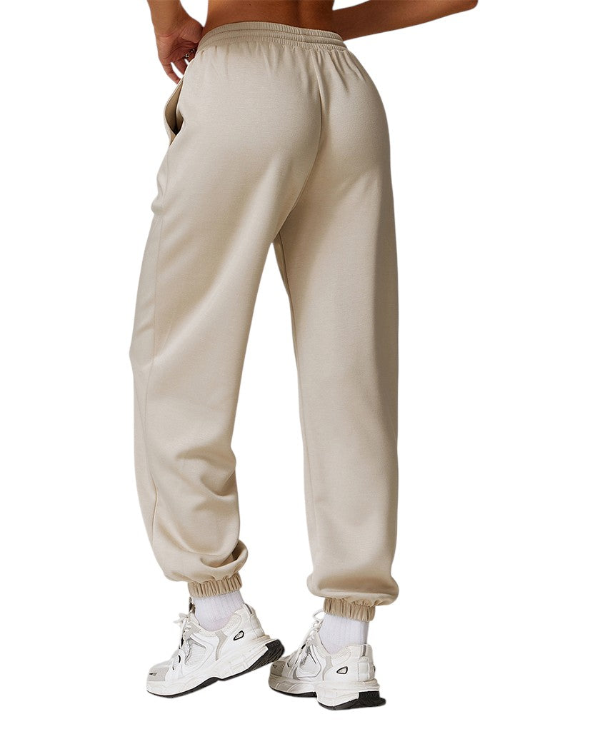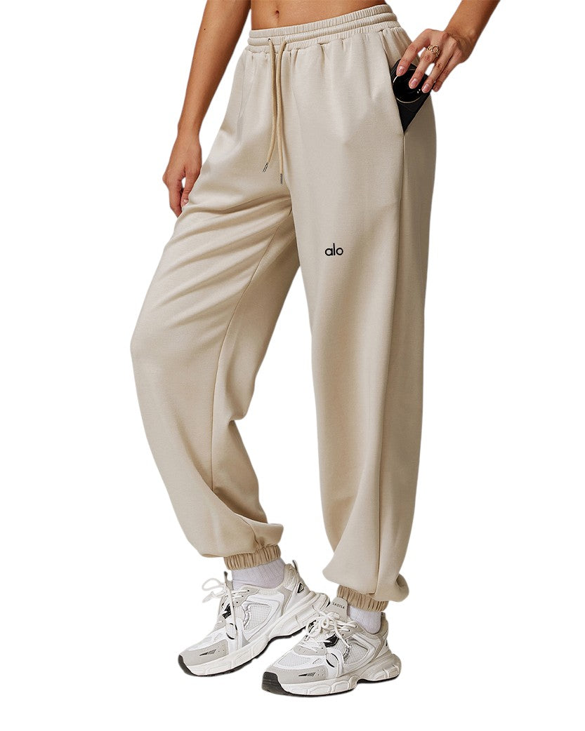 Спортивні штани від Alo Yoga з логотипом відрізняються еластичним поясом із шнурком, манжетами на резинці та вільним кроєм, що забезпечує комфорт і невимушений стиль. Виготовлені з французької махрової тканини: гладенької ззовні та м’якої ворсистої всередині.