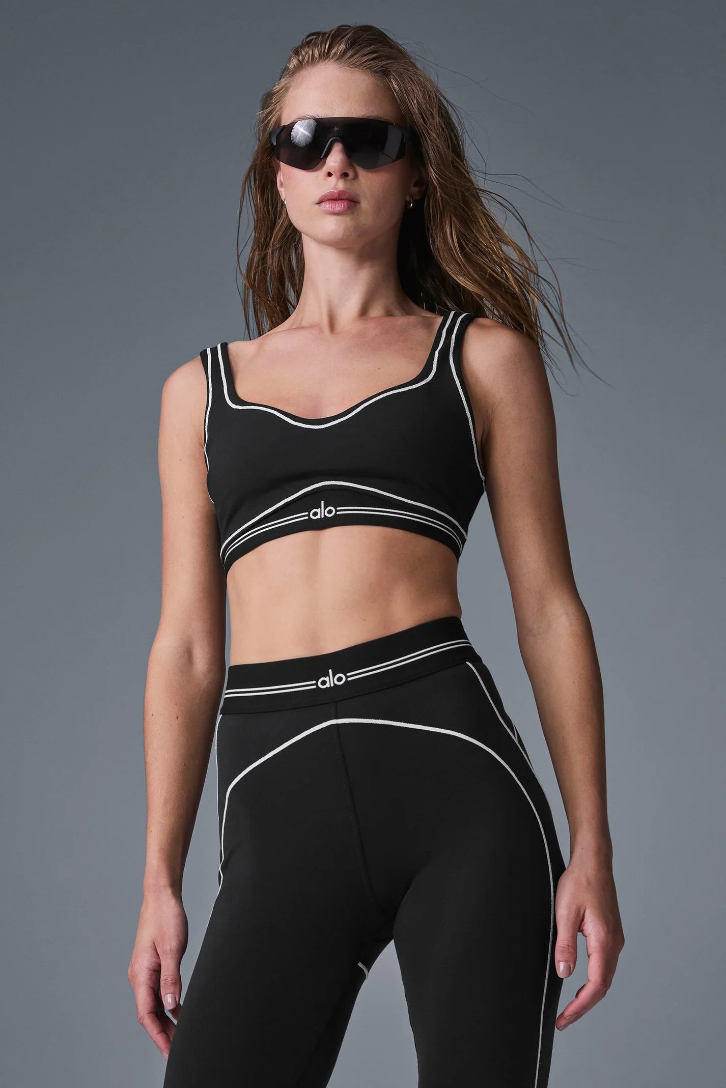 Цей бюстгальтер виготовлено з фірмового матеріалу Airbrush, який забезпечує м'яку компресію і комфорт протягом усього дня. Контрастні шви та елегантний вигнутий виріз підкреслюють жіночі форми. Він ідеально підходить для тренувань, таких як йога, пілатес або танці, надаючи свободу рухів та необхідну підтримку. Завдяки стильному дизайну, бюстгальтер виглядає сучасно, а в комбінації з легінсами Airbrush High-Waist Heart Throb Legging у тому ж кольорі створює завершений образ.