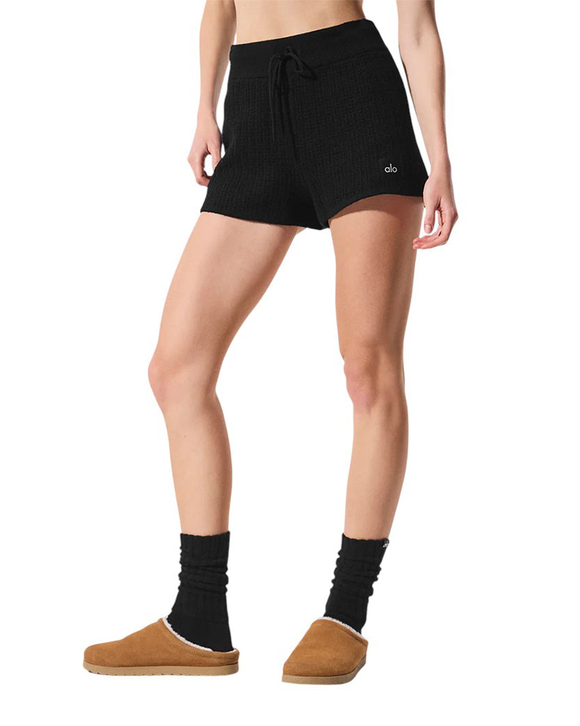 Alo Yoga Cashmere High-Waist Plush Waffle Short Black