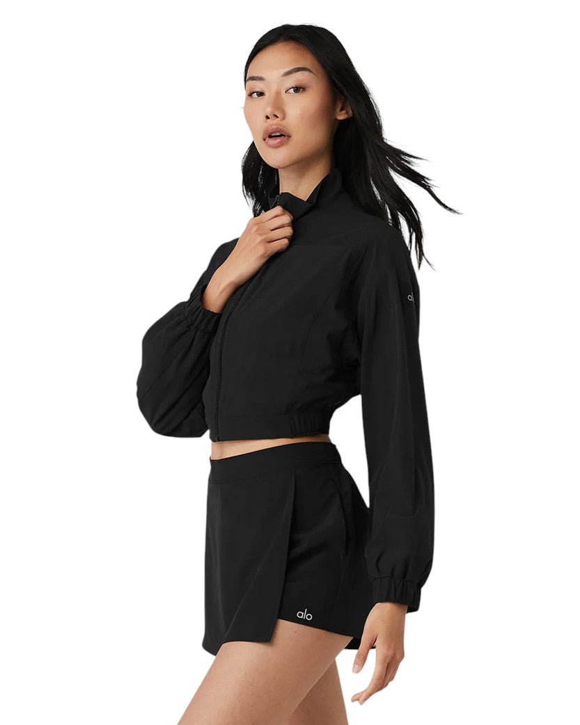 Куртка Clubhouse – це спортивна, обтічна модель із сучасним дизайном, виготовлена з гладкої, злегка еластичної тканини, що забезпечує комфорт і свободу рухів. Вона має комір-стійку, застібку-блискавку спереду, вентильовану спинку для кращої повітропроникності та укорочений поділ, що підкреслює талію. Куртку легко стилізувати - спробуйте поєднати з улюбленими спортивними речами, такими як легінси та топ, або з більш строгими речами, такими як штани та біла футболка.