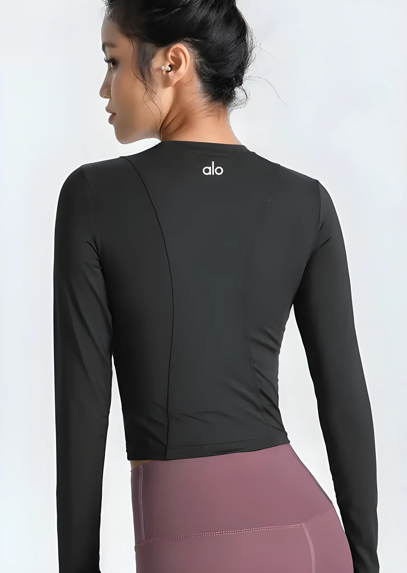 Alo Yoga Fitness Running Long Sleeve Sports Top Black
