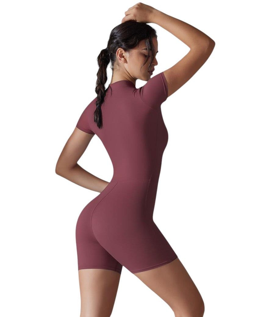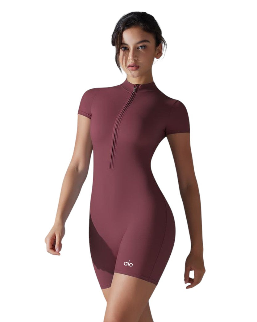 Alo Yoga Fitness Short Sleeve Short Jumpsuit Burgundy