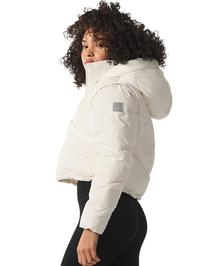 Укорочена довжина поєднується з об’ємною, пухкою формою, підкреслюючи фігуру та надаючи актуального вигляду. Міцна ripstop-тканина з легким утеплювачем дарує комфорт у прохолодні дні, а приховані кишені на блискавці роблять модель практичною та лаконічною.