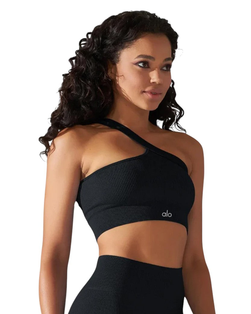 Спортивний бюстгальтер Alo Yoga One Shoulder Bra на одне плече поєднує сучасний дизайн і практичність. Виконаний з еластичної вологовідвідної тканини, він забезпечує комфорт і підтримку під час тренувань і активного способу життя.