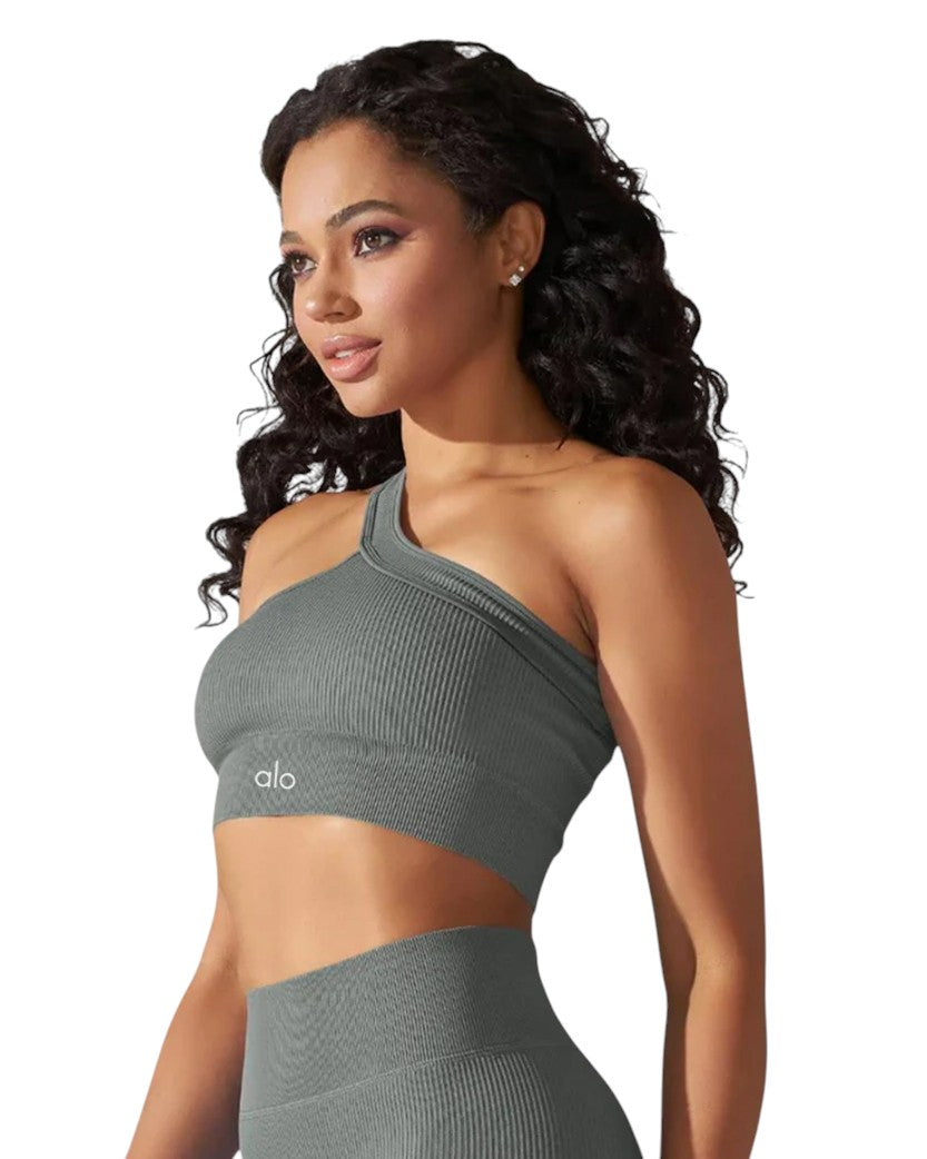 Спортивний бюстгальтер Alo Yoga One Shoulder Bra на одне плече поєднує сучасний дизайн і практичність. Виконаний з еластичної вологовідвідної тканини, він забезпечує комфорт і підтримку під час тренувань і активного способу життя.