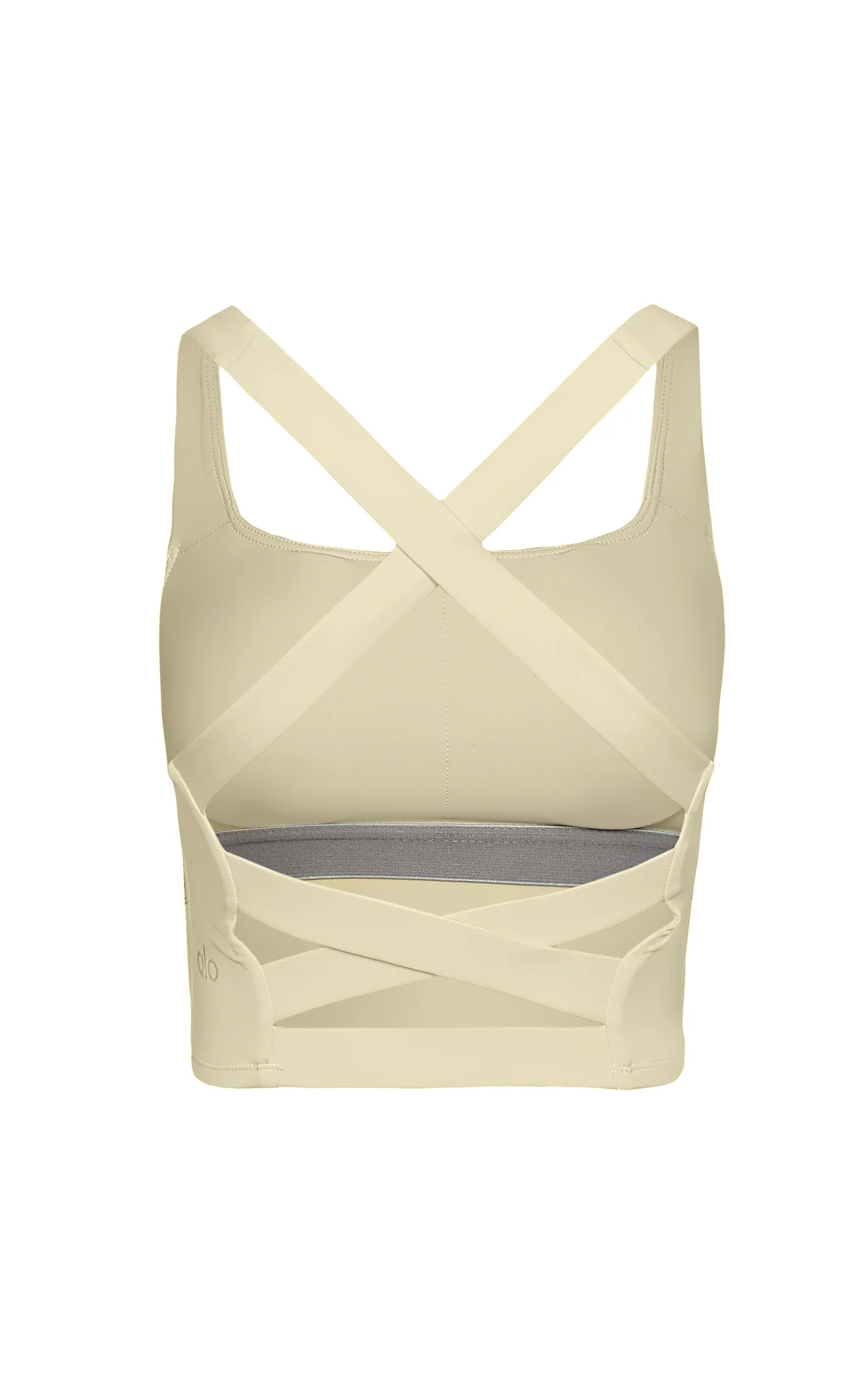 Топ від Alo Yoga вирізняється сучасним дизайном і преміальною якістю, завдяки легкій і м’якій тканині. Стильна спинка на ремінцях і глибокий виріз додають елегантності, роблячи його чудовим вибором для тренувань у студії або повсякденного носіння. Підходить для будь-якої фігури, забезпечуючи комфорт і легку підтримку.