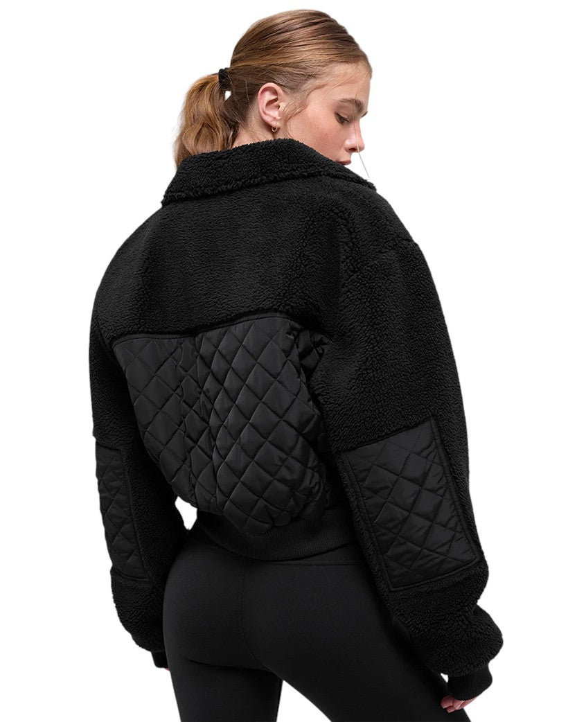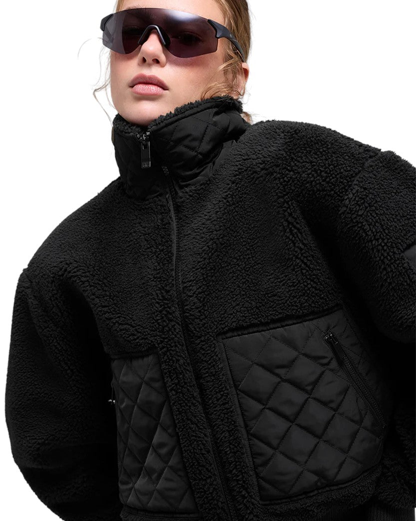 Ця стильна бомбер-куртка — чудовий вибір для створення модних виглядів у прохолодну погоду. Вона оснащена стьобаними деталями на кишенях, ліктях і спині, що надає їй текстурного контрасту та підкреслює спортивний стиль. Класичний крій з ребристими манжетами і низом гарантує зручну посадку. Куртка ідеально підходить для активного відпочинку. Кишені на блискавці додають практичності, а матеріал із пухнастої шерпи (100% поліестер) забезпечує тепло та комфорт.
