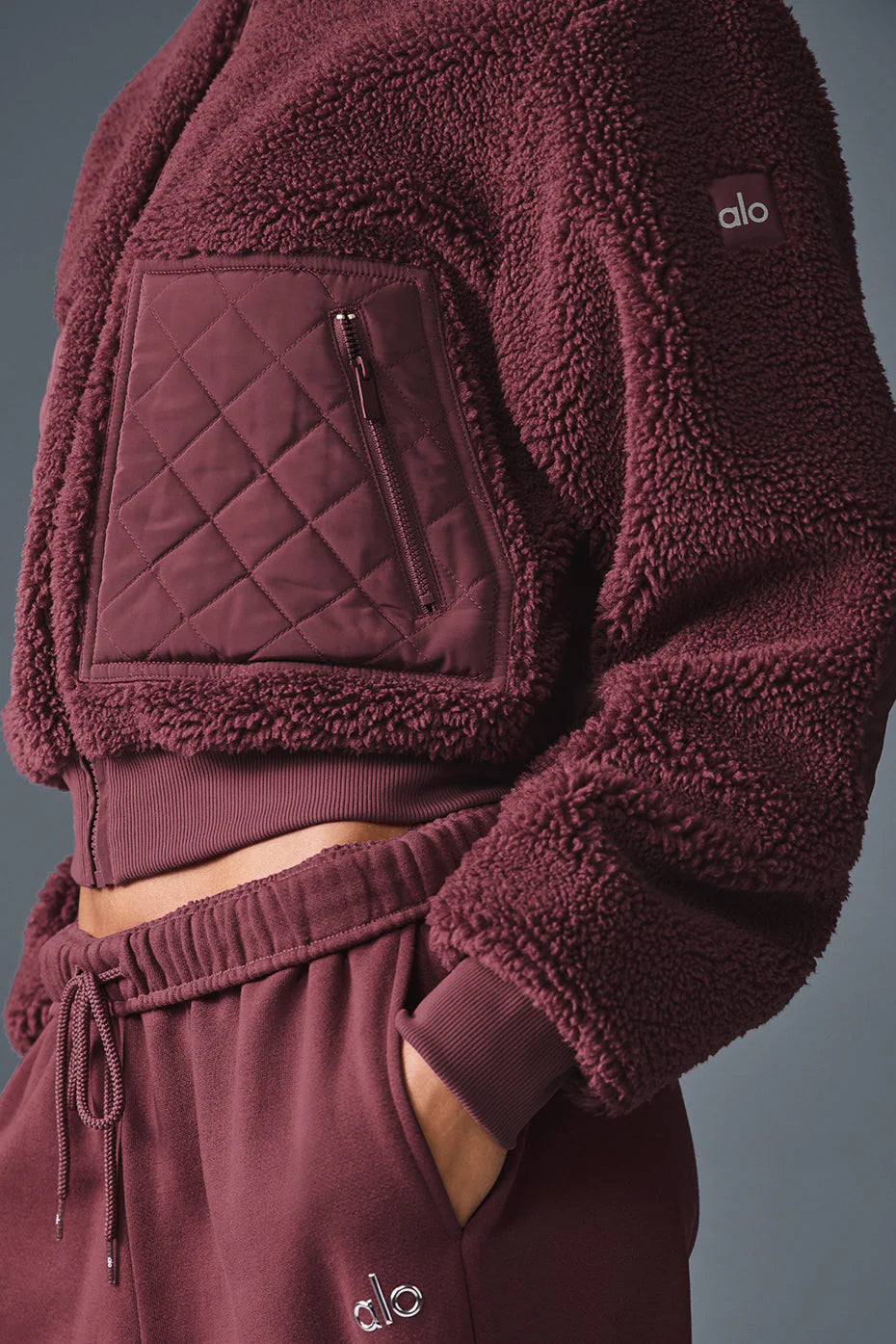 Alo Yoga Sherpa Edge Bomber Burgundy Truffle
