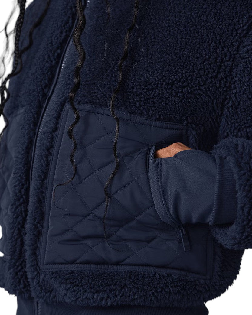 Ця стильна бомбер-куртка — чудовий вибір для створення модних виглядів у прохолодну погоду. Вона оснащена стьобаними деталями на кишенях, ліктях і спині, що надає їй текстурного контрасту та підкреслює спортивний стиль. Класичний крій з ребристими манжетами і низом гарантує зручну посадку. Куртка ідеально підходить для активного відпочинку. Кишені на блискавці додають практичності, а матеріал із пухнастої шерпи (100% поліестер) забезпечує тепло та комфорт.