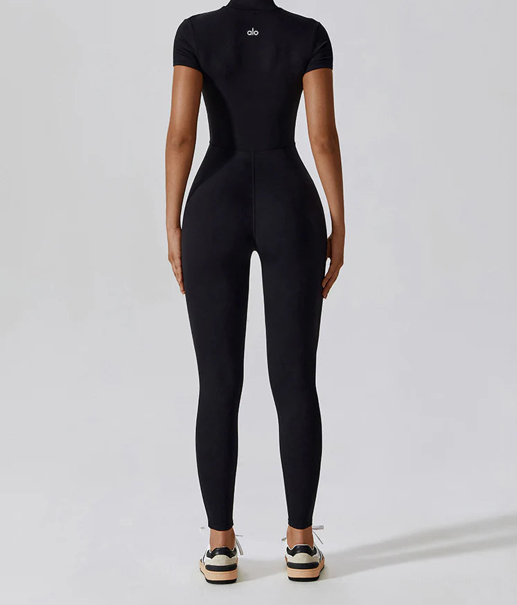 Alo Yoga Short Sleeve Long Jumpsuit Black 83051-BK