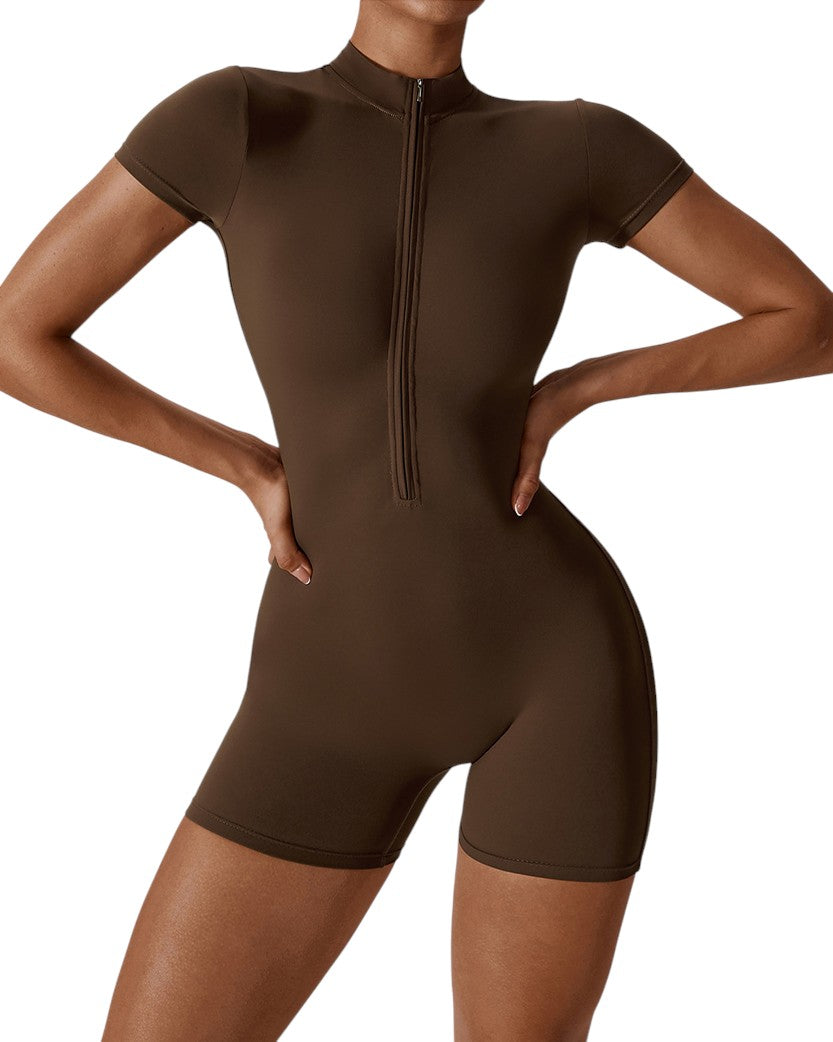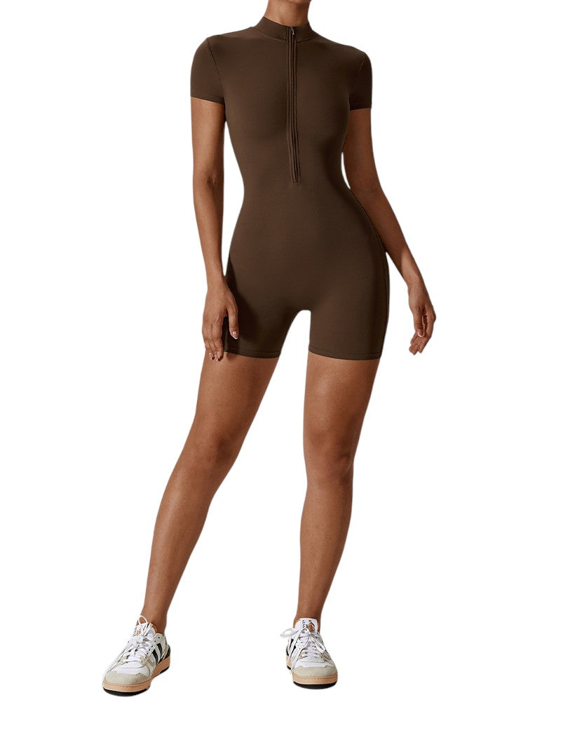 Alo Yoga Short Sleeve Short Jumpsuit Brown ct444-BN