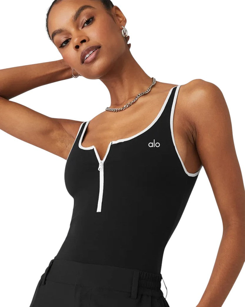 Пориньте у світ стилю разом з боді Supernova, виготовленим зі скульптурної тканини Airbrush для ідеальної посадки на всіх типах фігури. Цей елегантний чорно-білий суцільний купальник має застібку-блискавку спереду для комфорту та контрастний кант для шикарного вигляду. Ідеальний для активного відпочинку, він бездоганно поєднує в собі функціональність і стиль.