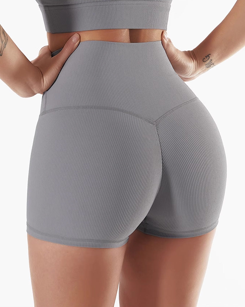 Alo Yoga Tight Fitting Ribbed Shorts Grey 001-GY