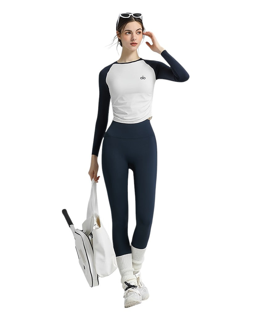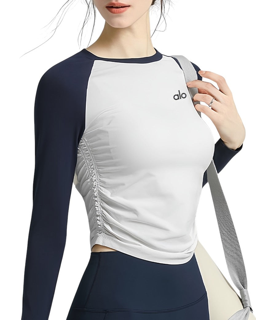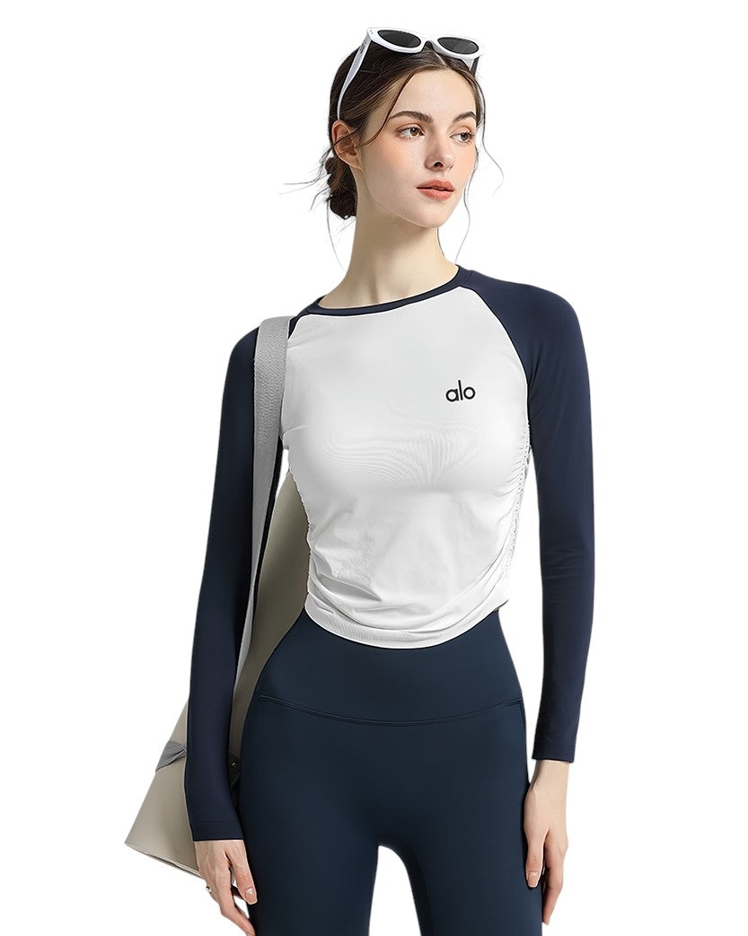 Alo Yoga Two-color Long Sleeve Blue/White
