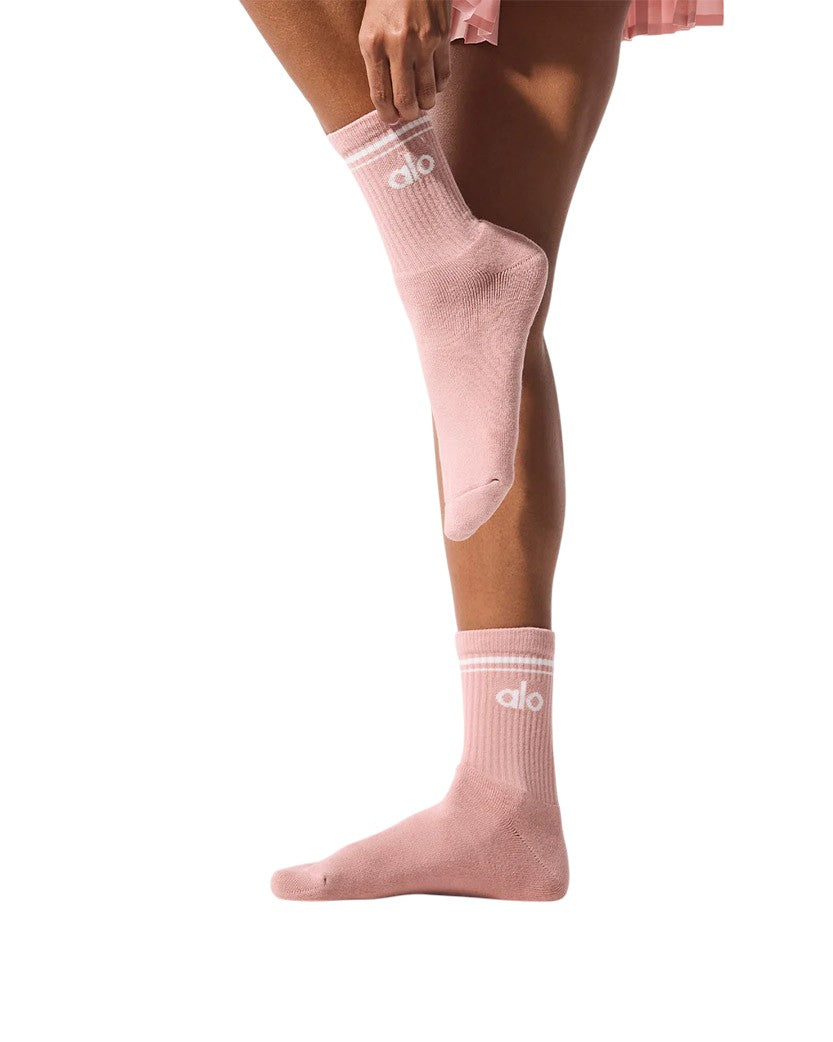 Alo Yoga Unisex Half-Crew Throwback Socks Pink/White