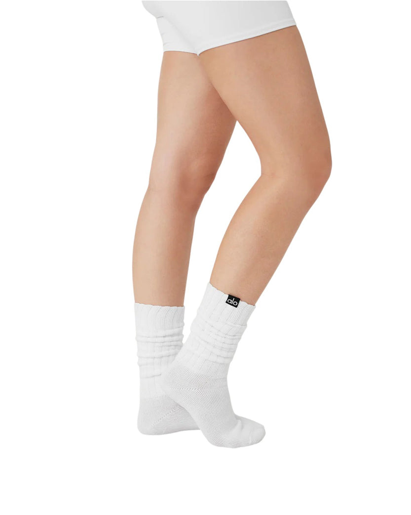 Alo Yoga Unisex Scrunch Socks — м’які, зручні шкарпетки, які ідеально підходять для щоденного використання. Легка текстура дозволяє шкірі дихати, а складки на халяві додають стильного ретро-акценту. Прихований принт на манжеті — лаконічна деталь для завершеного образу.
