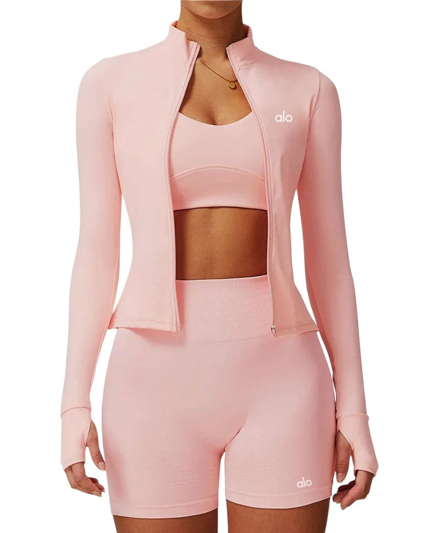 Alo Yoga Zipper Long Sleeve — це функціональний лонгслів із блискавкою, виготовлений з еластичної, дихаючої тканини, яка м’яко облягає тіло та не сковує рухів. Модель має комір-стійку й блискавку спереду, що додають спортивного вигляду й дозволяють регулювати посадку. Ідеально поєднується з легінсами або шортами для активного способу життя чи повсякденного стилю.