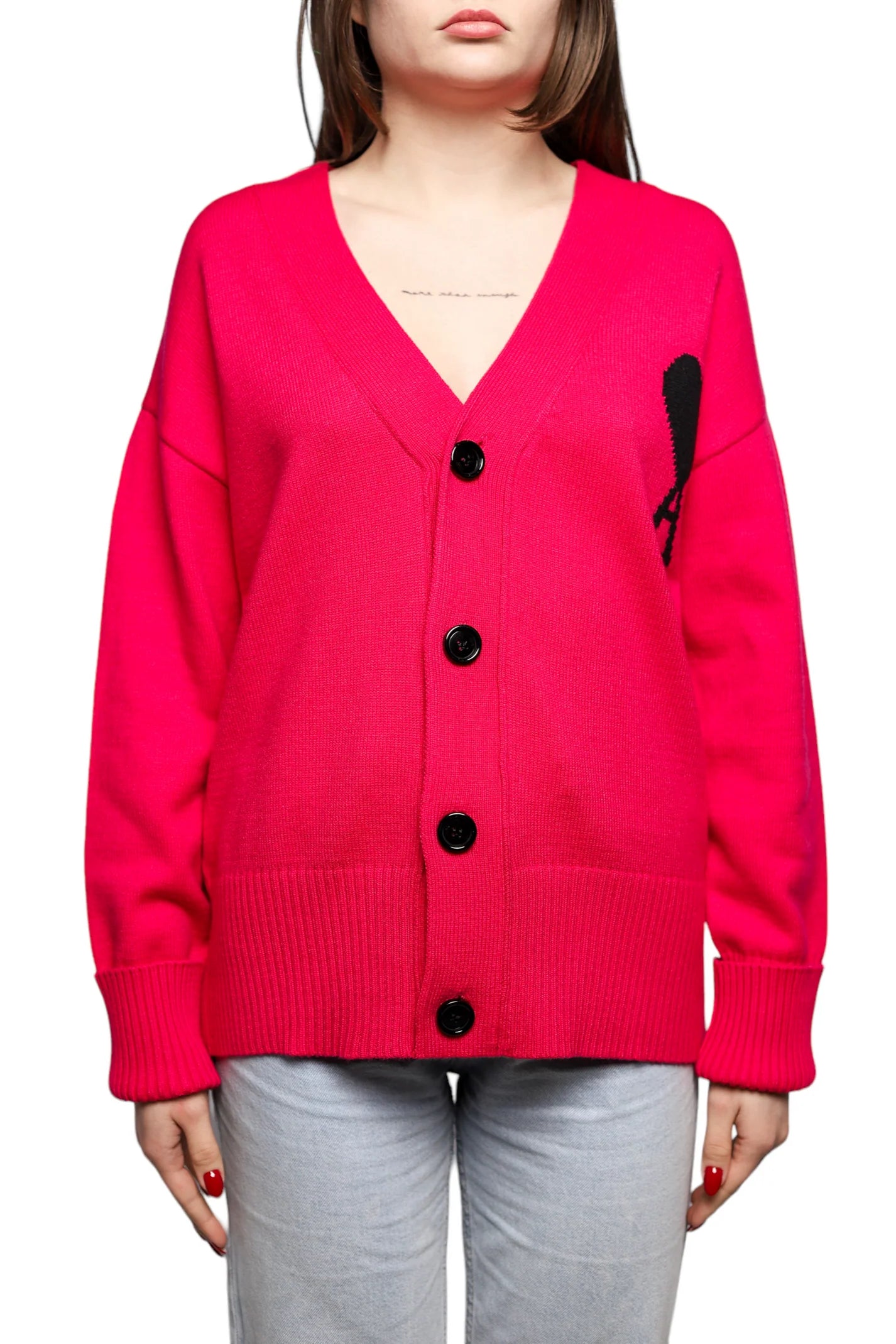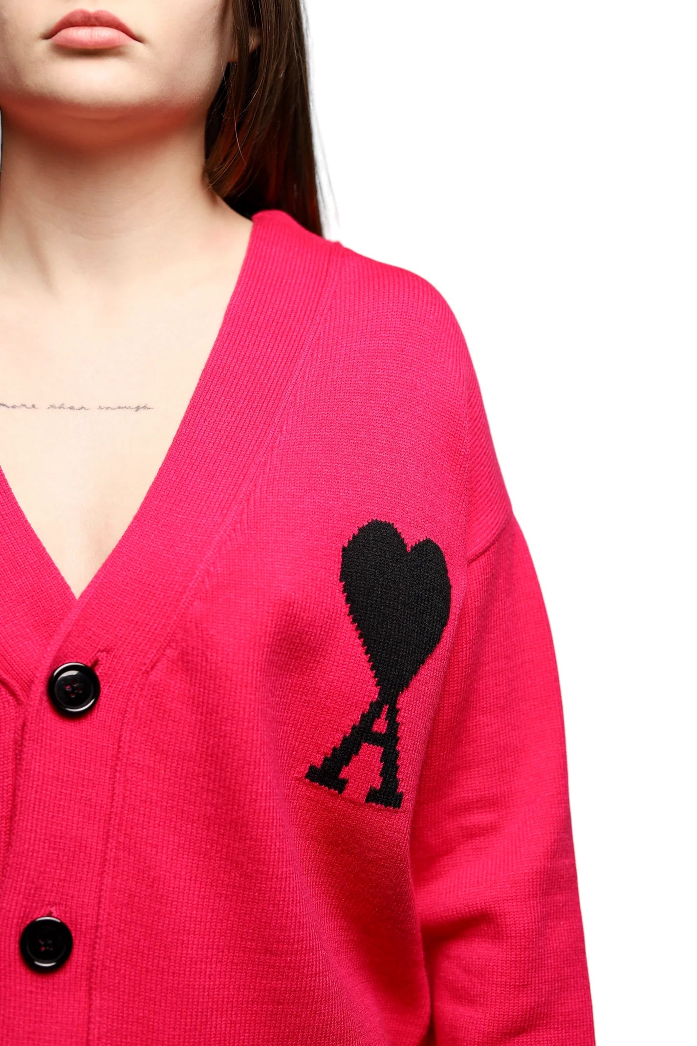 AMI Paris Ami de Coeur Cardigan Fuchsia