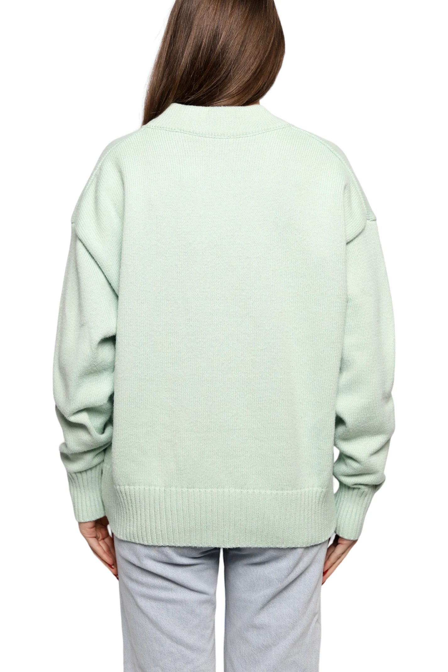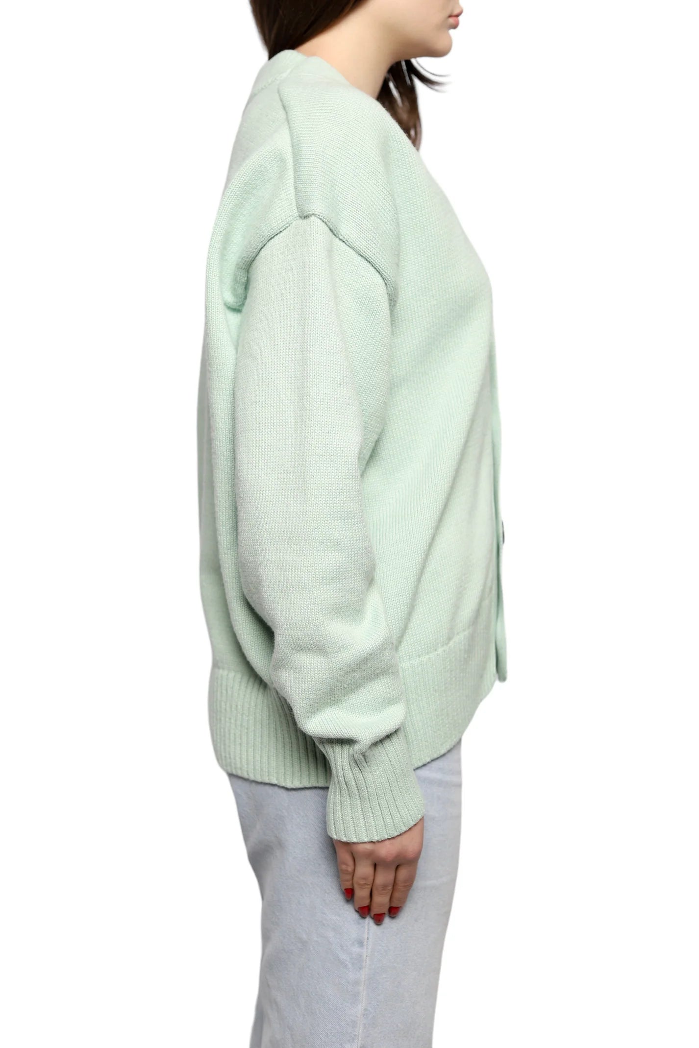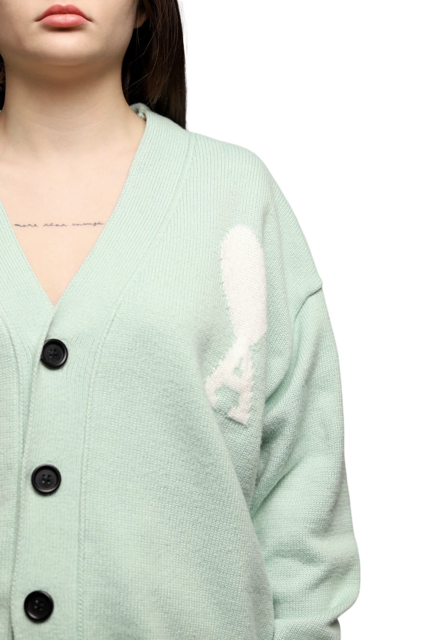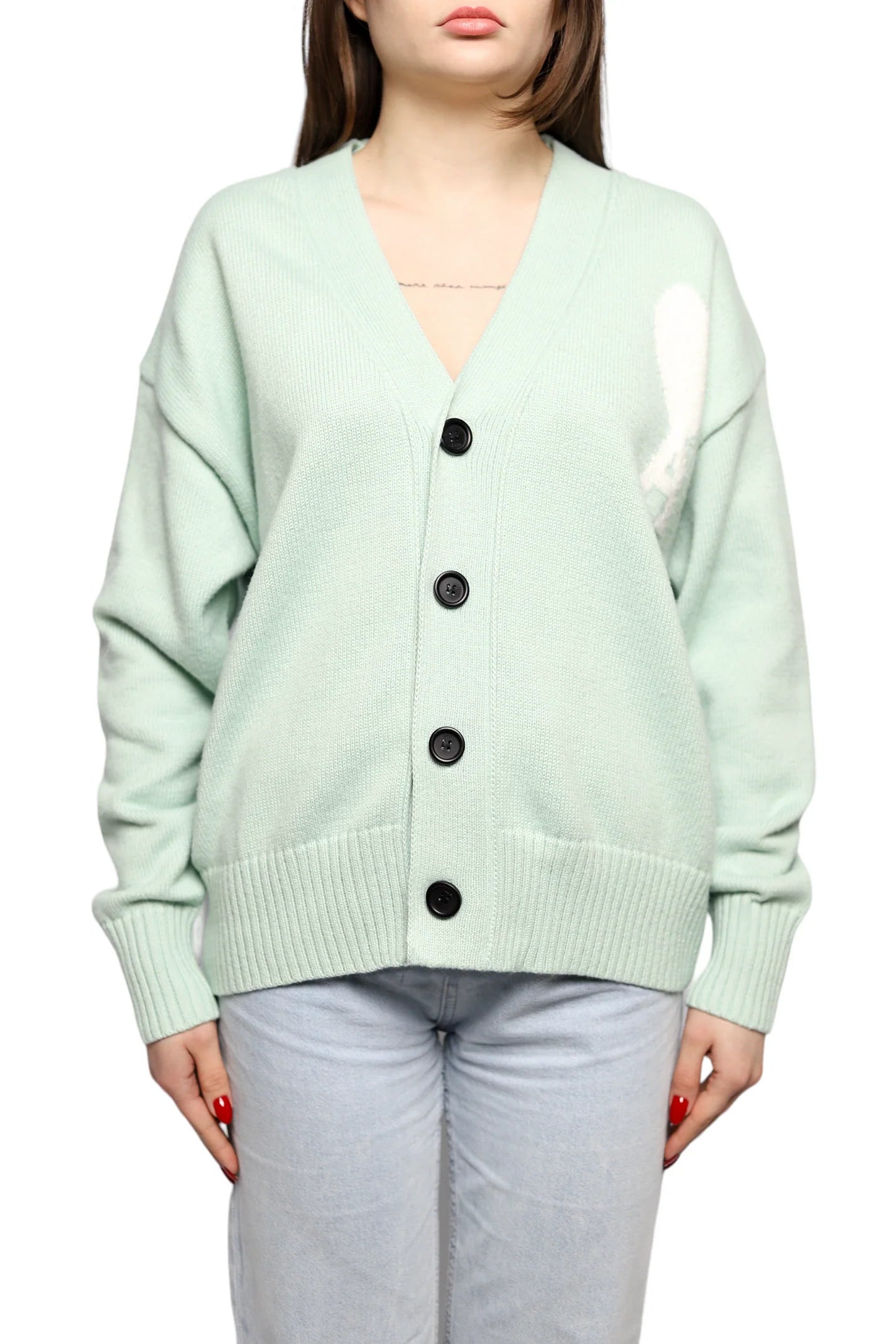 В'язаний кардиган від AMI Paris виготовлений з високоякісної суміші бавовни та вовни. Модель має стильну застібку на ґудзиках, ребристий трикотажний Y-подібний виріз горловини, поділ та манжети. Графічний логотип бренду на грудях додає елегантності та впізнаваності цьому дизайну.