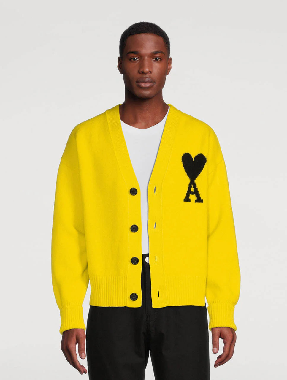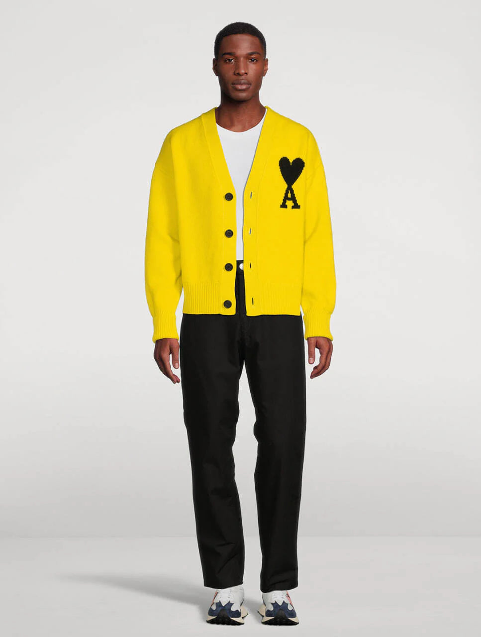 В'язаний кардиган від AMI Paris виготовлений з високоякісної суміші бавовни та вовни. Модель має стильну застібку на ґудзиках, ребристий трикотажний Y-подібний виріз горловини, поділ та манжети. Графічний логотип бренду на грудях додає елегантності та впізнаваності цьому дизайну.