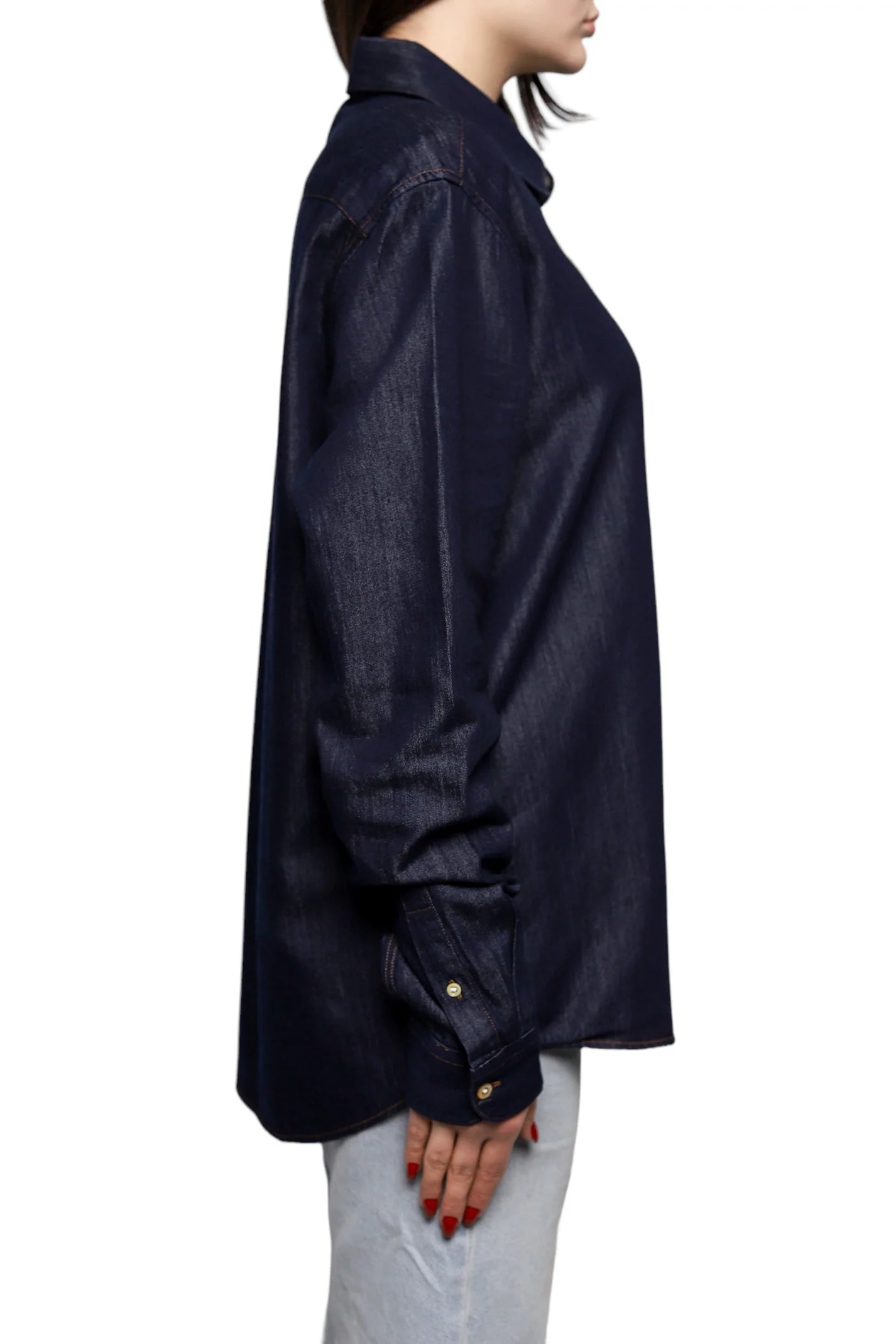 Ця джинсова сорочка від AMI Paris виготовлена з органічної бавовняної суміші, яка не розтягується, забезпечуючи комфорт і довговічність. Модель має класичний крій, застібку на ґудзиках і манжети на двох ґудзиках для регулювання посадки на зап'ястях. Контрастна коричнева прострочка додає стильного акценту до деталей сорочки. Вишита нашивка з логотипом на грудях додає унікальності та стилю.