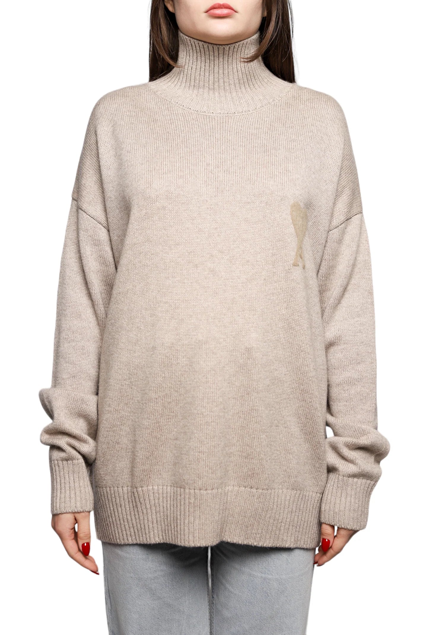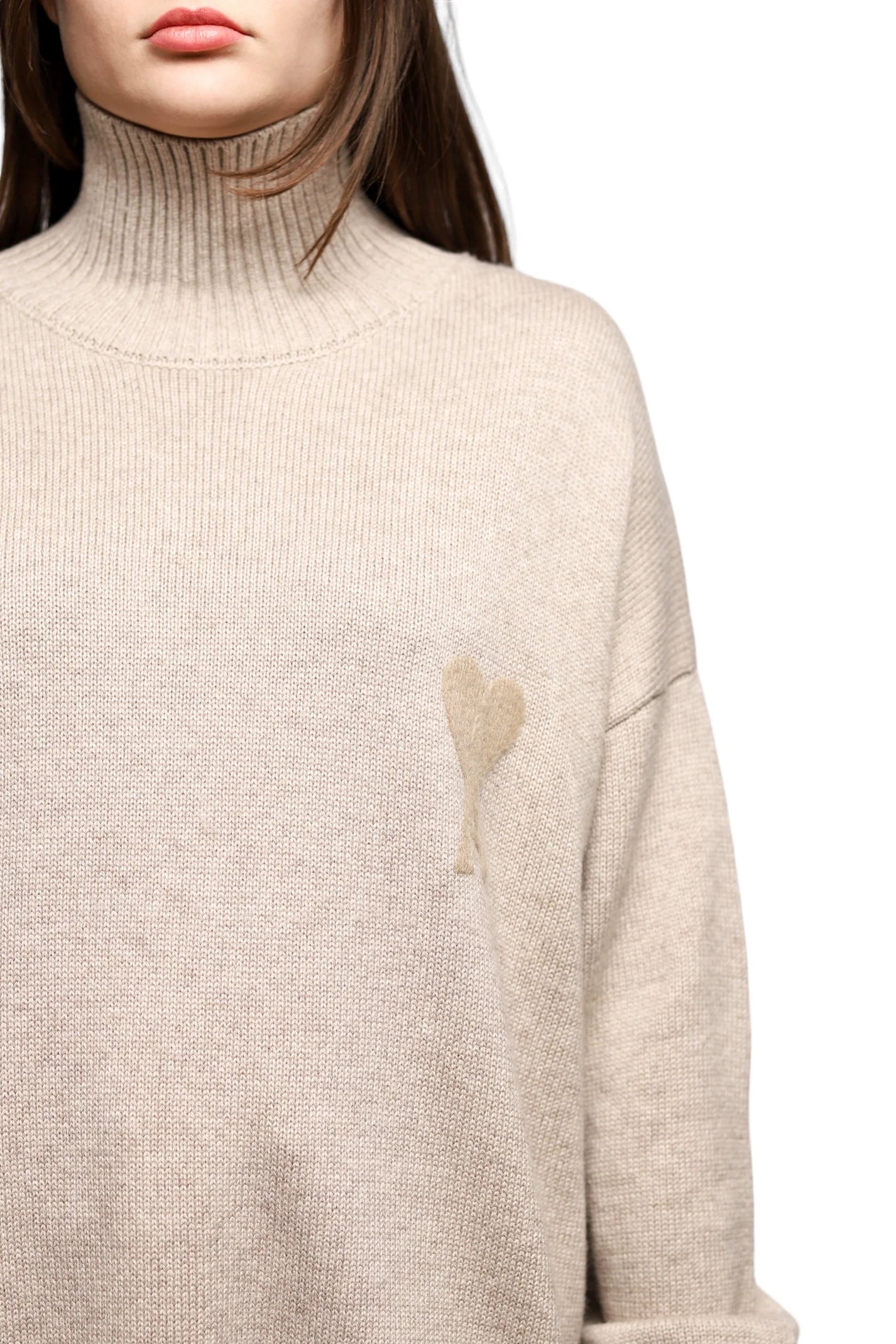 AMI Paris Ami de Coeur High-neck Jumper Beige