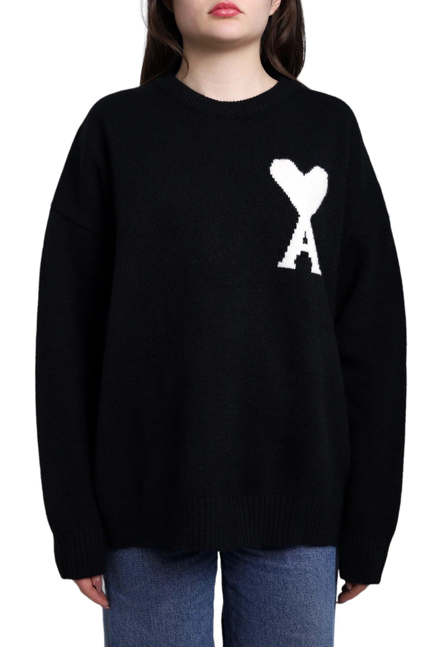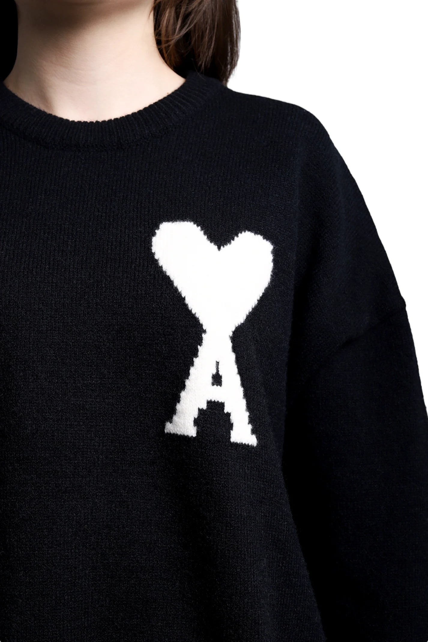 AMI Paris Ami De Coeur Oversize Sweater Black White Heart