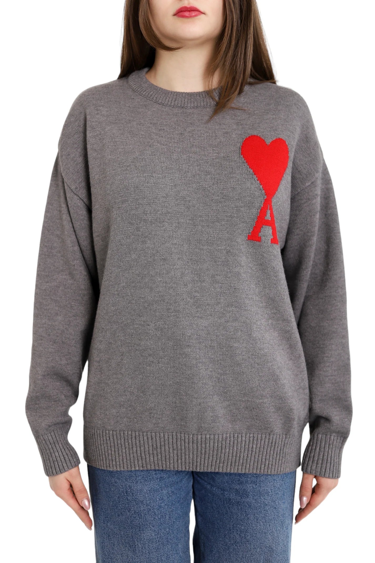 AMI Paris Ami De Coeur Oversize Sweater Grey