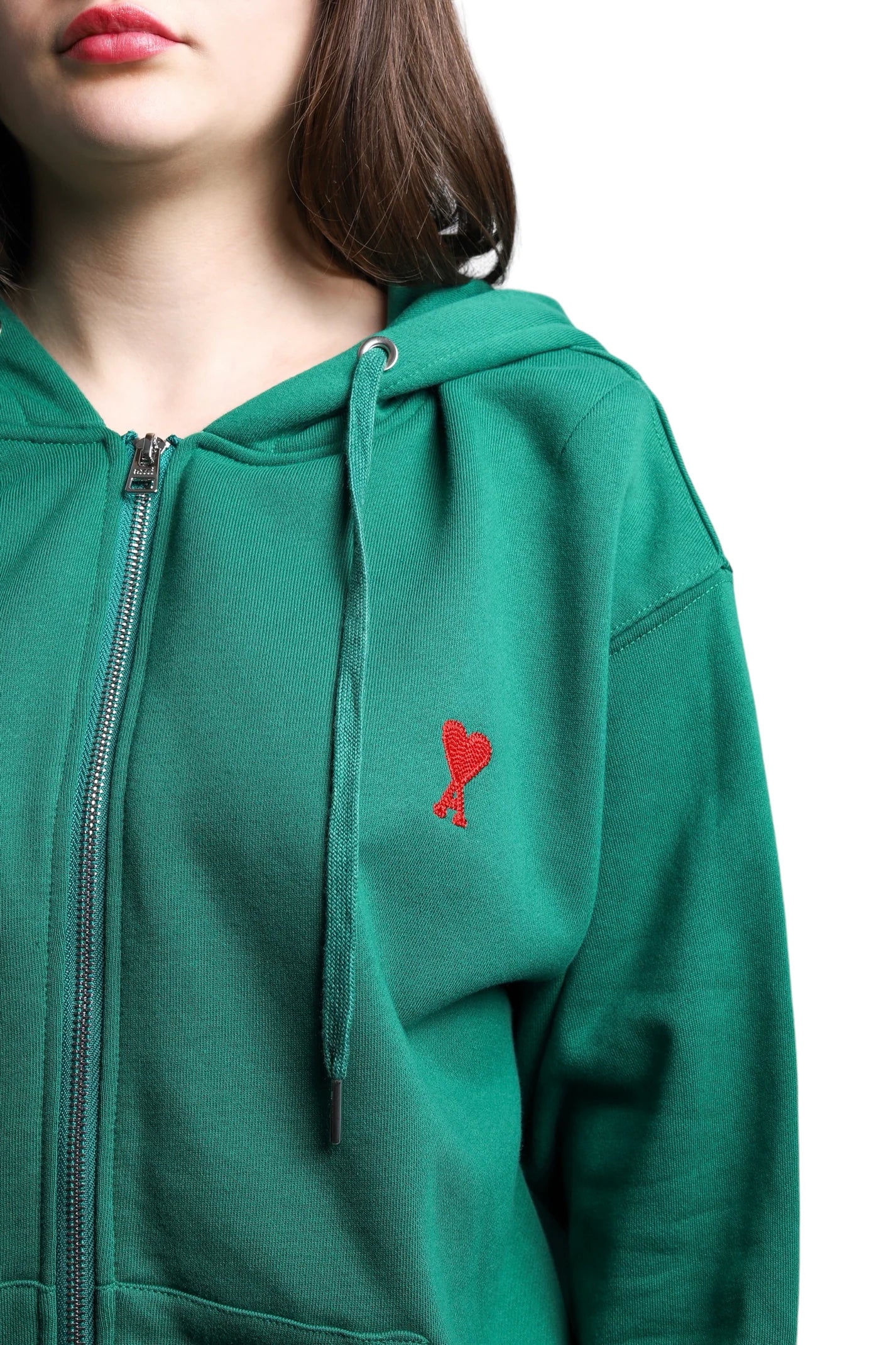 AMI Paris Ami De Coeur Zipped Hoodie Green