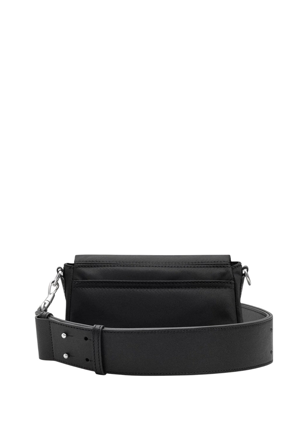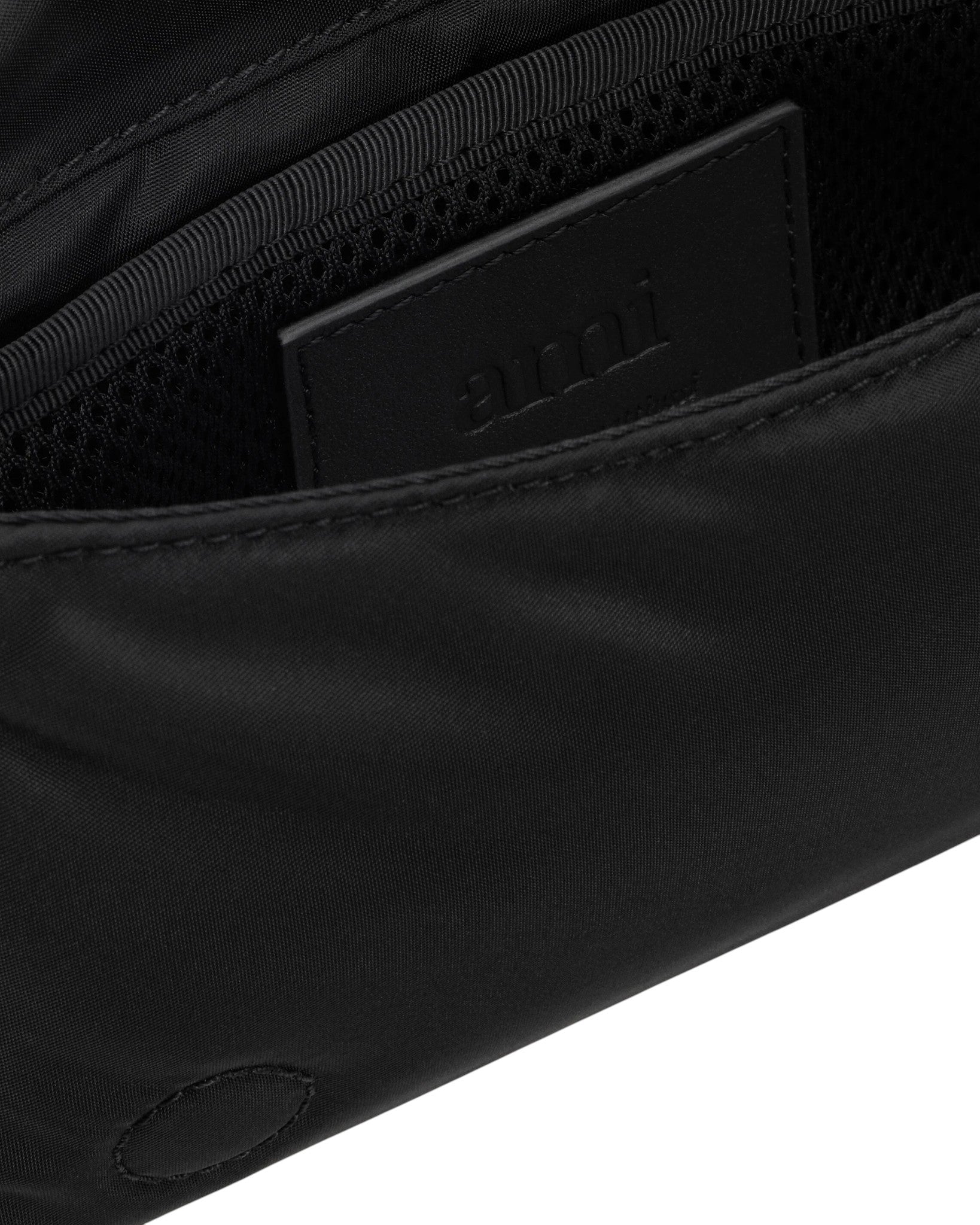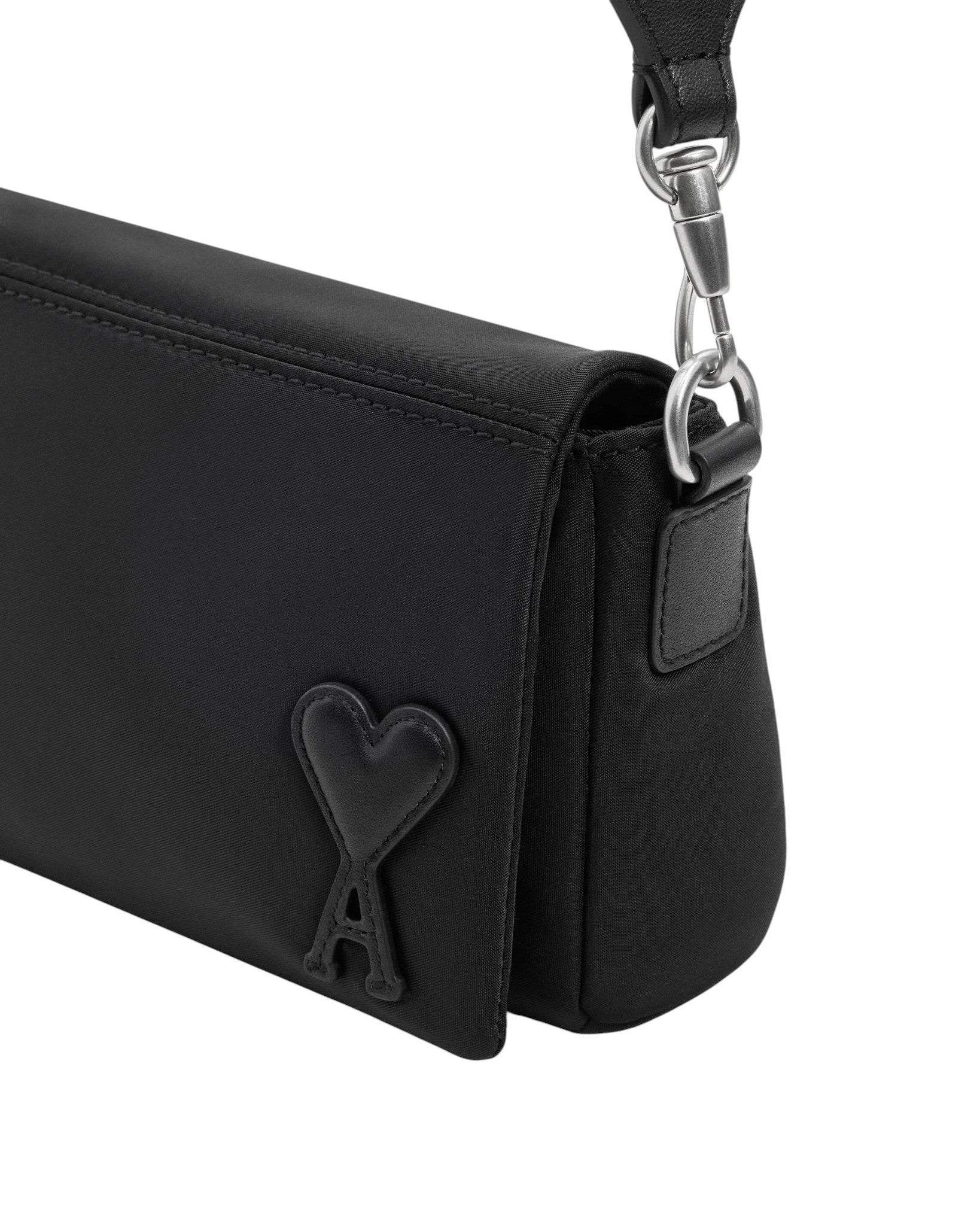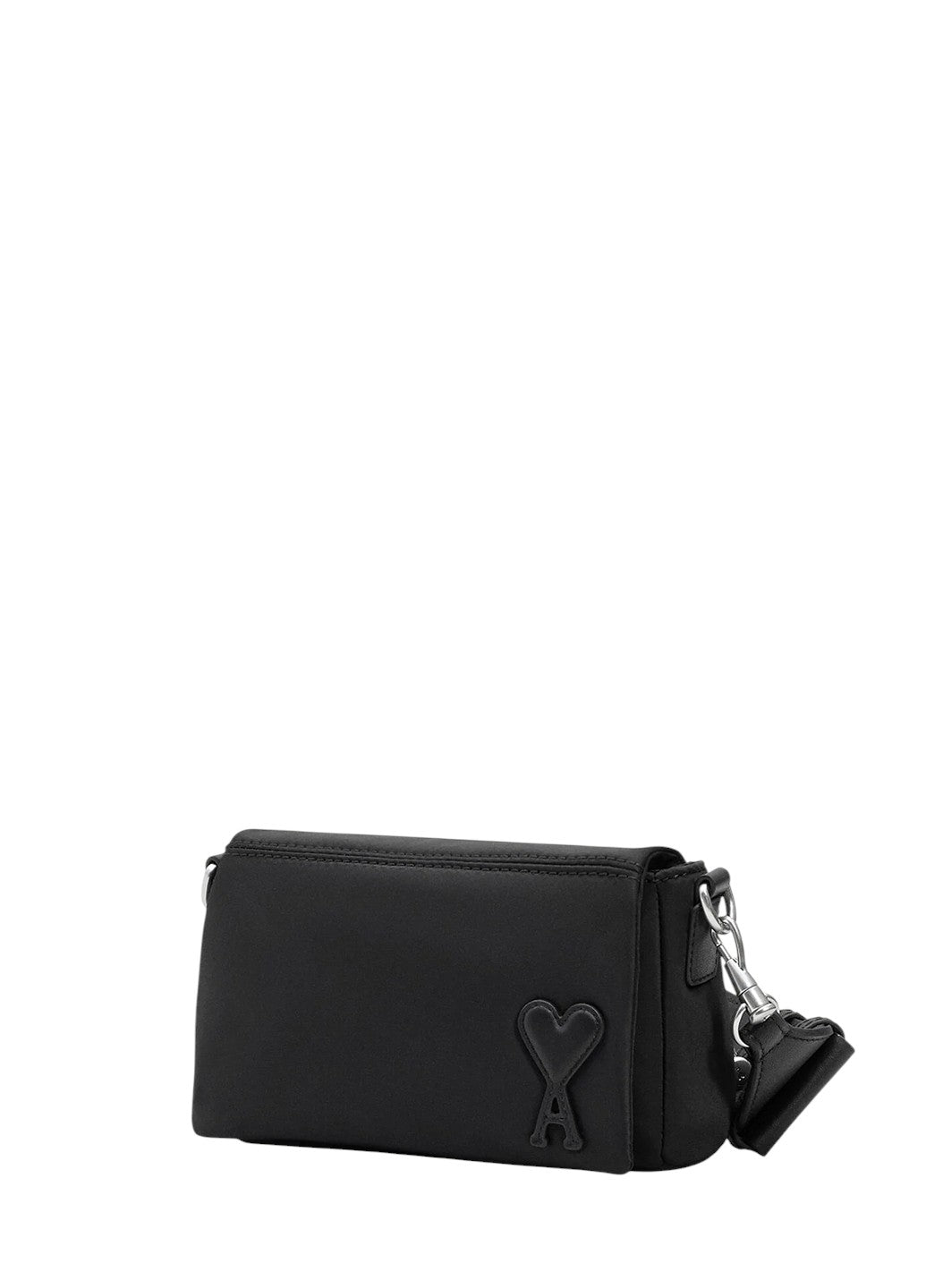 Сумка через плече AMI Paris виготовлена з водовідштовхувального нейлону та оздоблена сріблястою металевою фурнітурою, що додає сучасного акценту. Модель має регульований шкіряний ремінець, внутрішню накладну кишеню з м’якої сітки та задню нейлонову кишеню для зручного зберігання дрібних речей. Завершує дизайн фірмова шкіряна нашивка Ami de Cœur та підкладка з нейлонової канви, які підкреслюють поєднання практичності та впізнаваної естетики бренду.